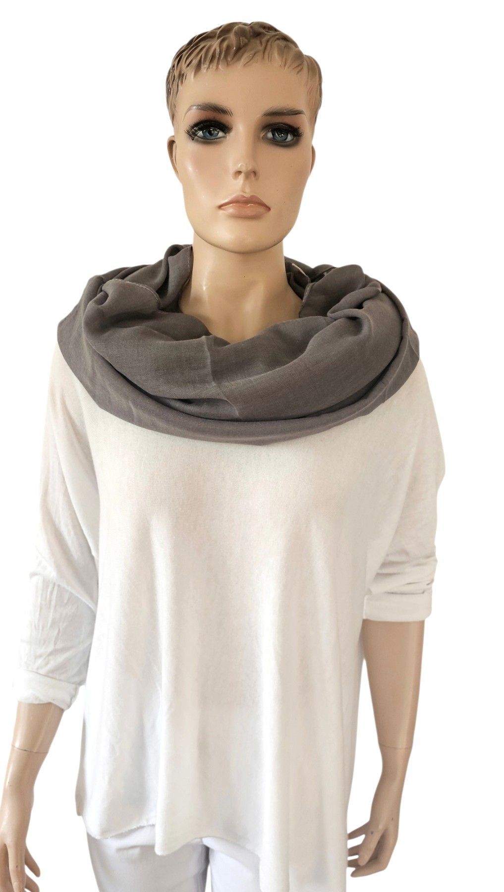XXL Loop Schal Halstuch Schlauchschal Baumwolle Viskose einfarbig in Grau