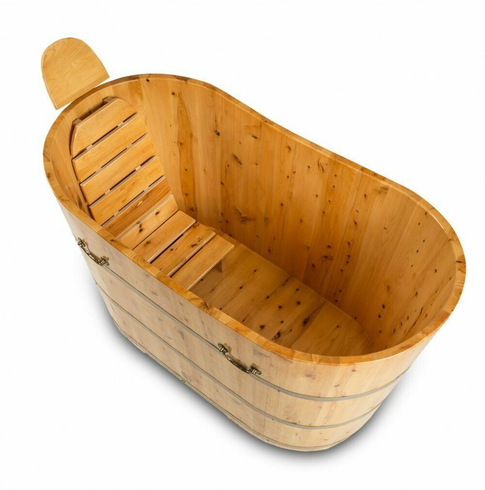 XXL Luxus freistehende Holz-Badewanne 150 cm Holzbadewanne Tauchbecken Holzwanne
