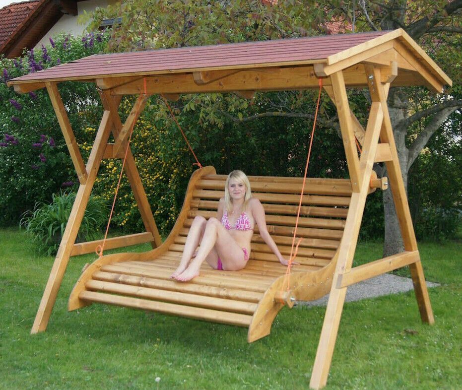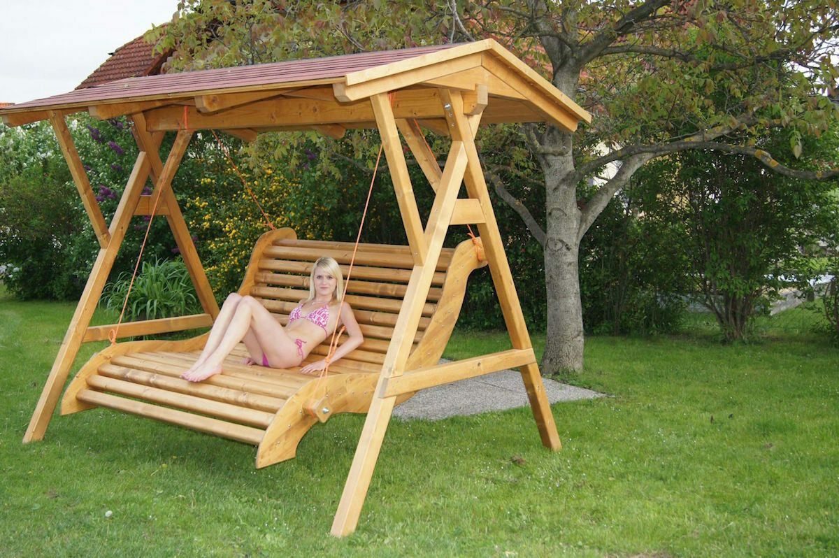 Luxus Premium Hollywoodschaukel Holz Massivholz Gartenmöbel Gartenschaukel