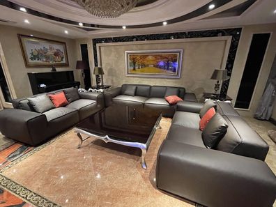 Schwarze Premium Sofagarnitur 3 + 3+3 Sitzer Luxus Wohnzimmer Möbel Couch