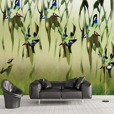 • Premium 3D Wandtapete Jade Schnitzerei Vögel Luxus Chinesischer Stil 10395