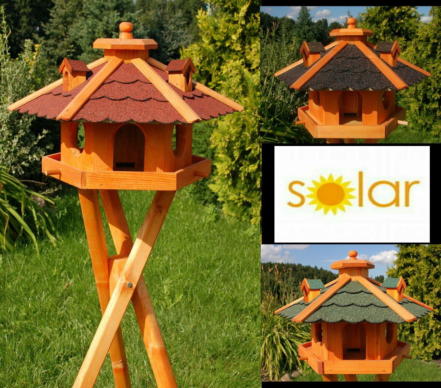 XXL Luxus Vogelhaus mit / ohne Solar / Ständer Holz Futterhaus Vogelfutterhaus