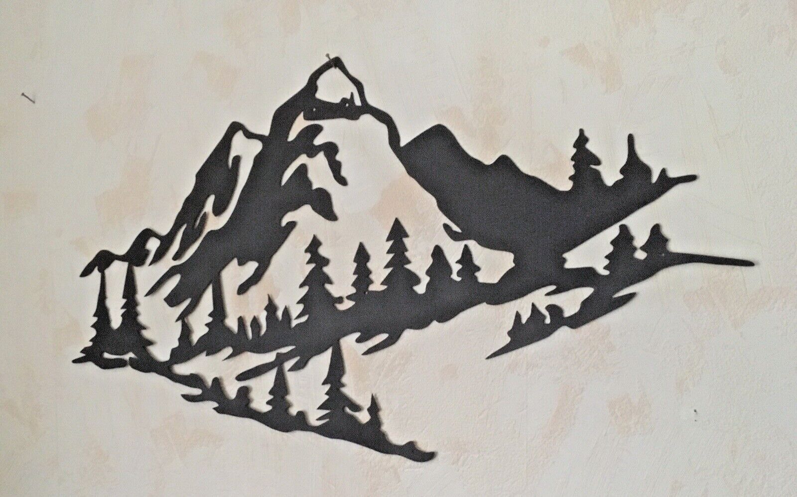 Bergpanorama XXL Wandornament aus Metall - schwarz - Laser gecutet Größe ca. 70 x 40 cm Die coole Wanddekoration für alle Freunde der Berge ! Sie schafft mit ihrem klaren Design eines ausgeschnitten Bergpanoramas und dem 3D-Effekt ein besondere Atmosphäre in jedem Raum Befestigungslöcher vorhanden F