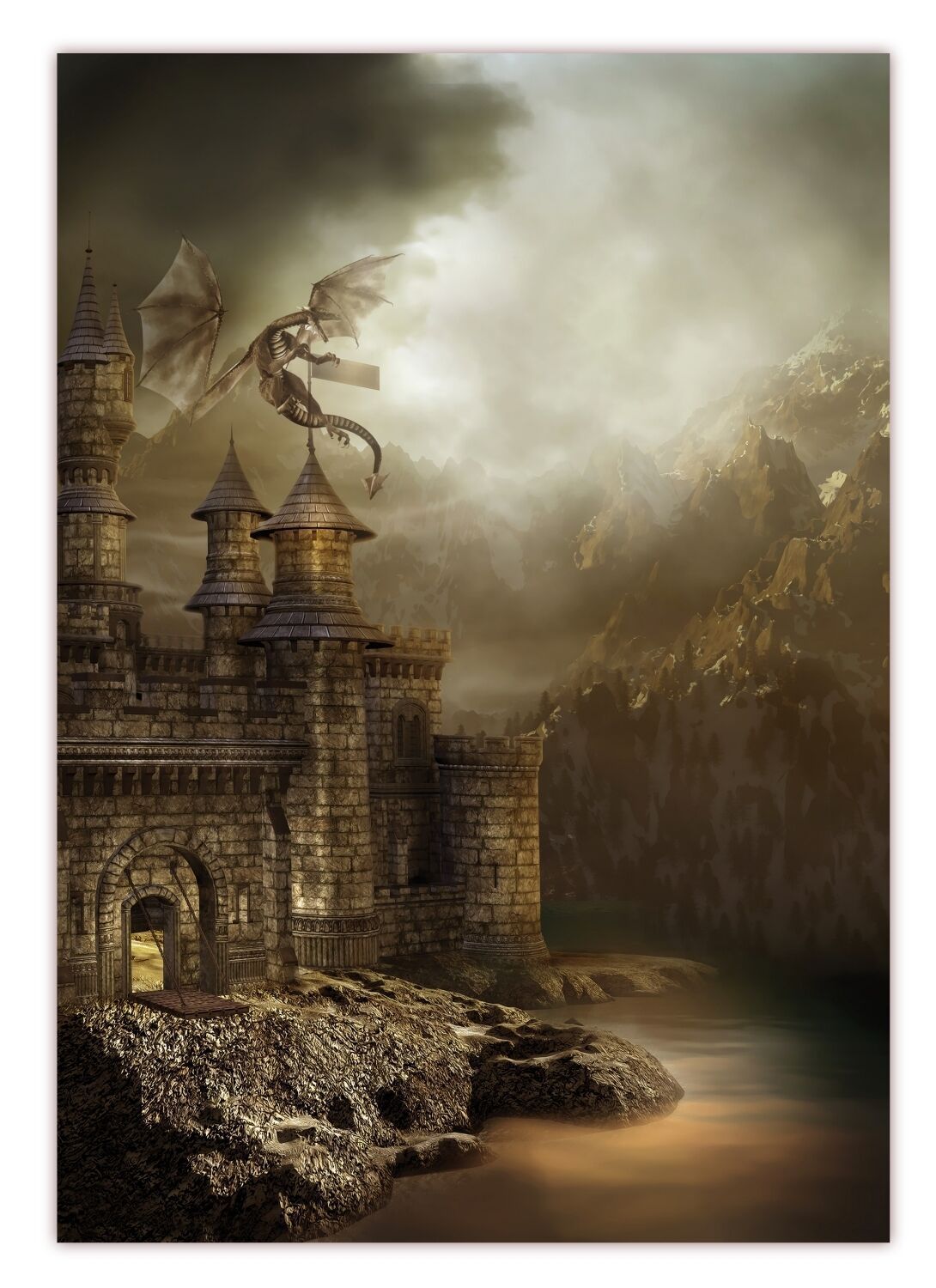 XXL Poster 100 x 70cm Drachen attackiert Festung Fantasy-Dragon