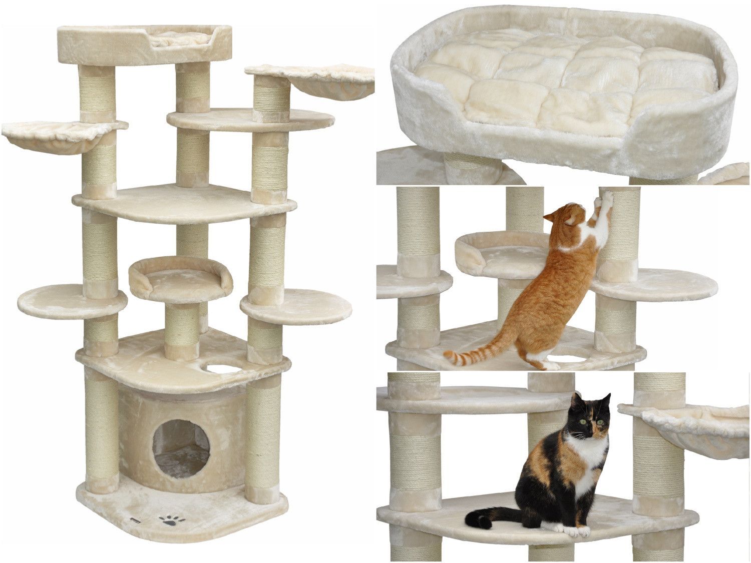 nanook XXL Premium Kratzbaum für große Katzen beige mit 15 cm Kratzstämmen
