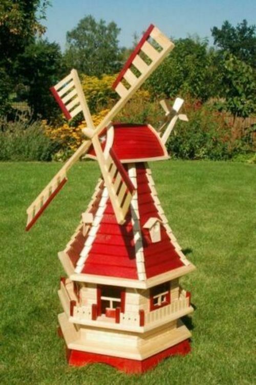 XXL Premium Solar Windmühle Holz 130 cm rot kugelgelagert Garten WOW
