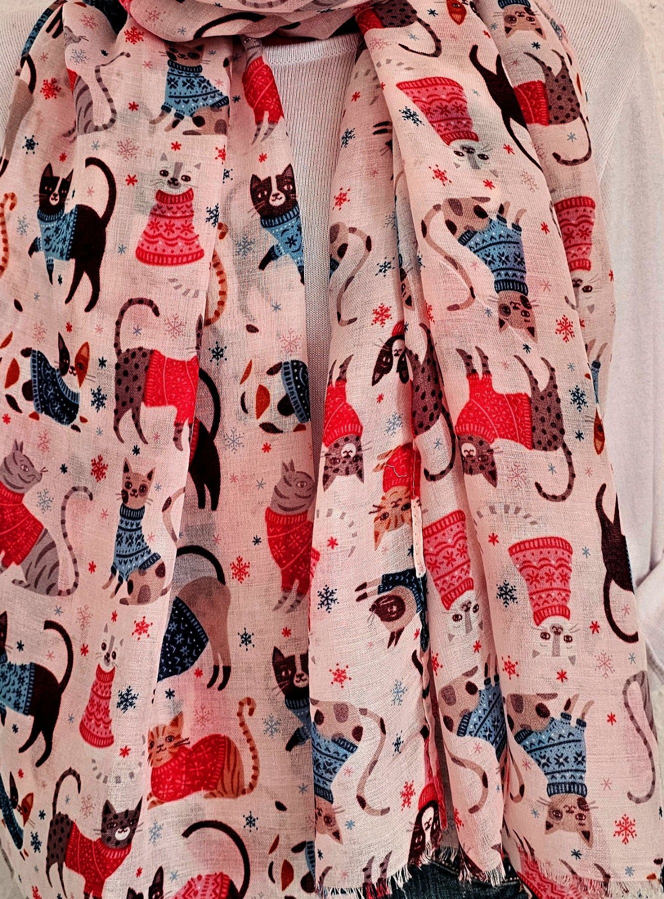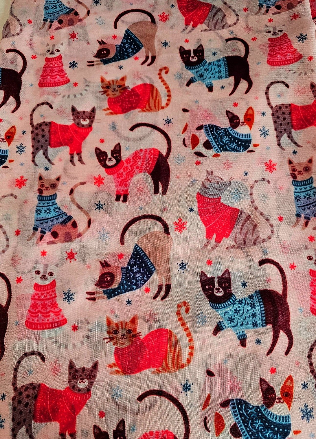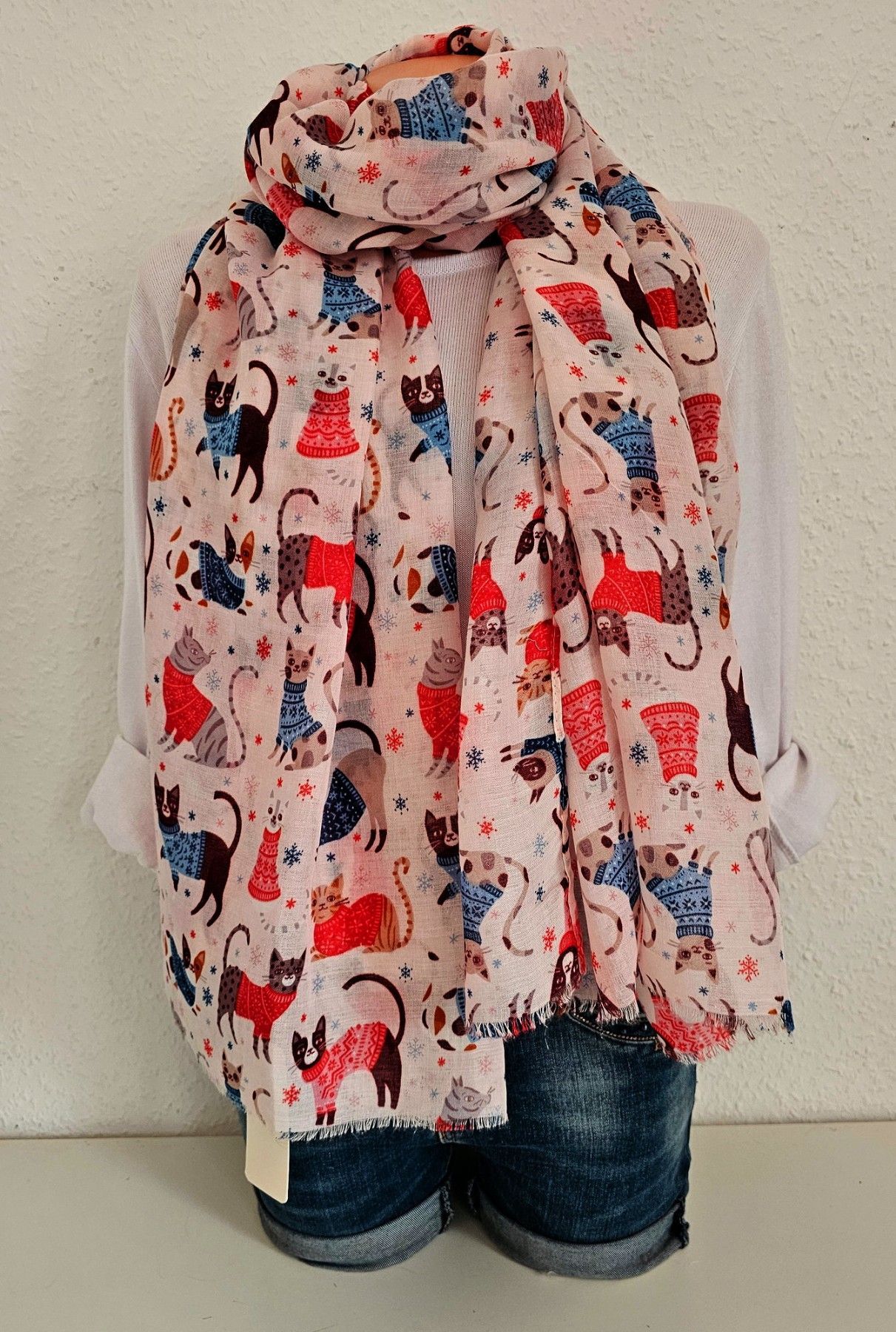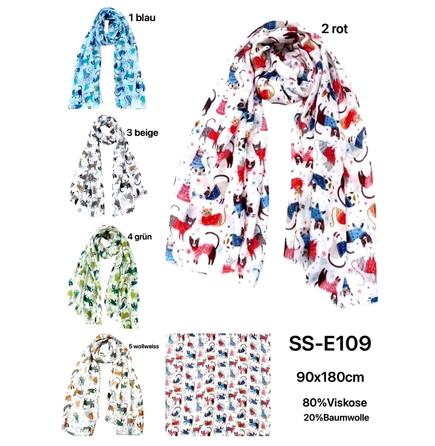 XXL Schal Halstuch Tuch Scarf Viskose/Baumwolle bunter Katzenprint Rosa/Bunt