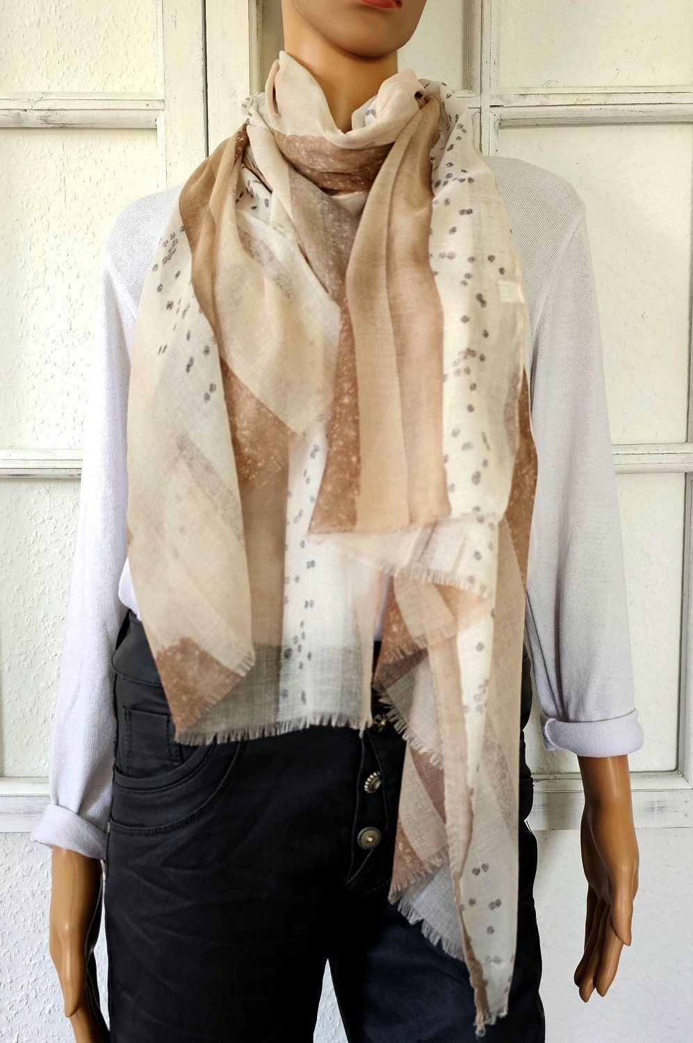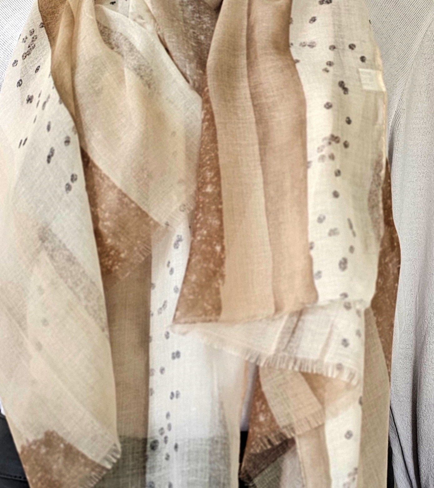 XXL Schal Halstuch Tuch Stola Viskose Mustermix Tupfen/ Streifen Beige Taupe