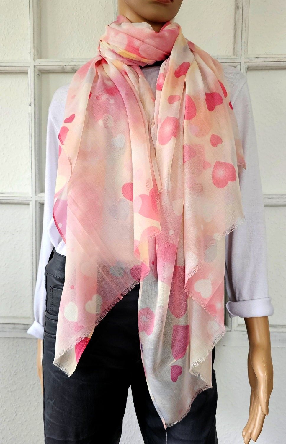 XXL Schal Scarf Halstuch Stola Viskose Baumwolle bunter Farbverlauf Herzen Rosa