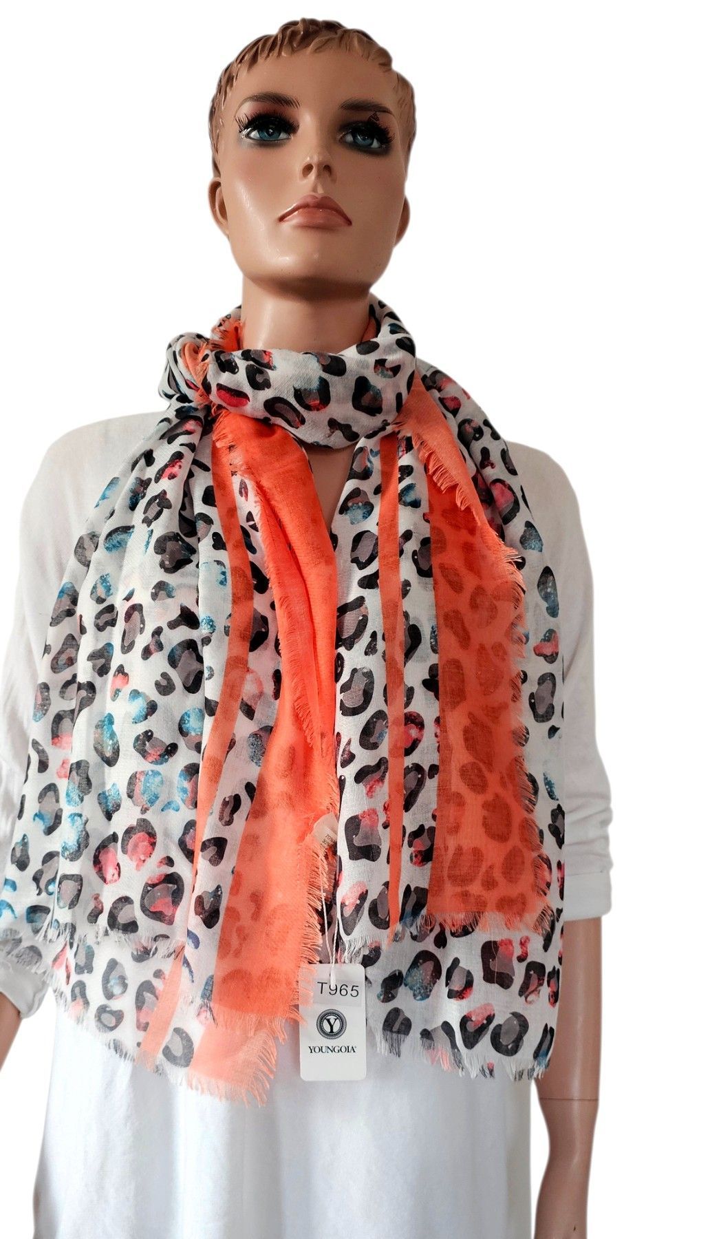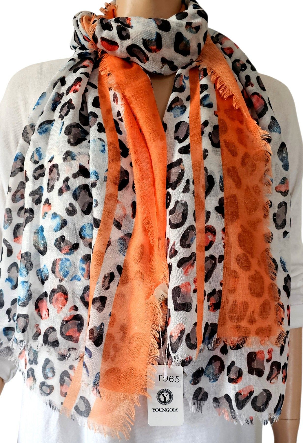 XXL Schal Scarf Halstuch Tuch Viskose/Baumwolle bunter Animalprint Hell/Orange