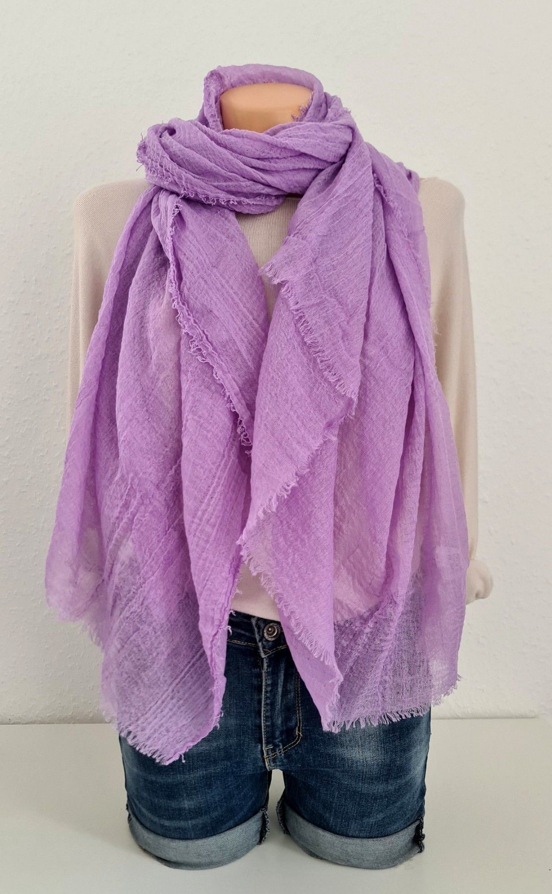 XXL Schal Tuch Halstuch Scarf Viskose Baumwolle kurze Fransen einfarbig Flieder