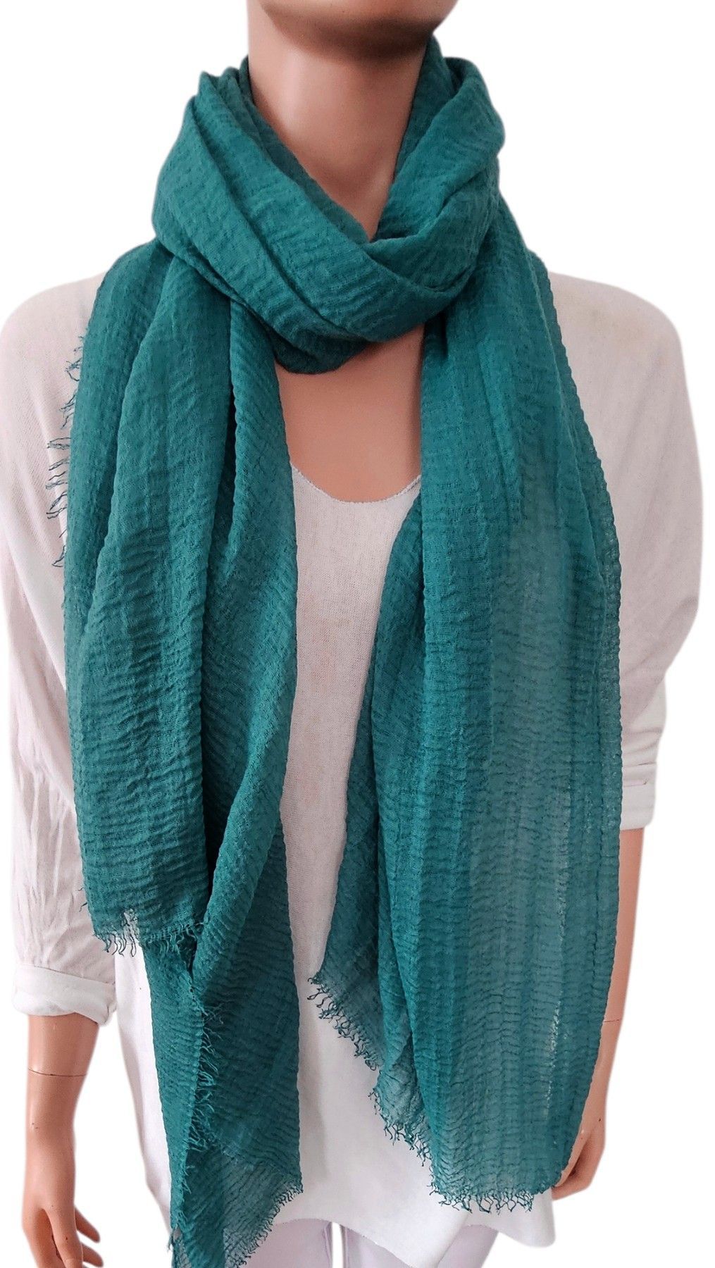 XXL Schal Tuch Halstuch Scarf Viskose Baumwolle kurze Fransen einfarbig Petrol