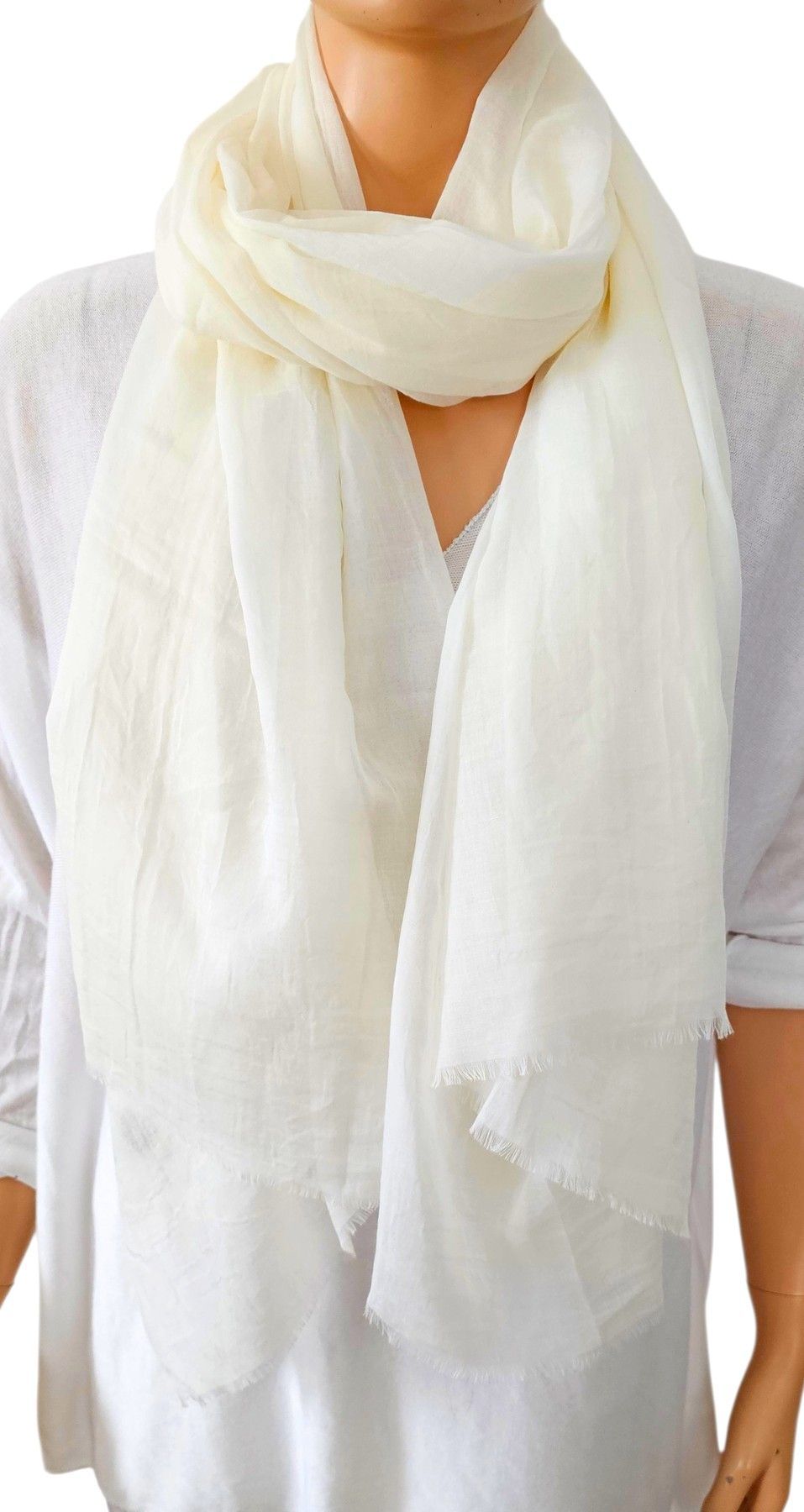XXL Schal Tuch Halstuch Scarf Viskose Baumwolle kurze Fransen einfarbig Wollweiß