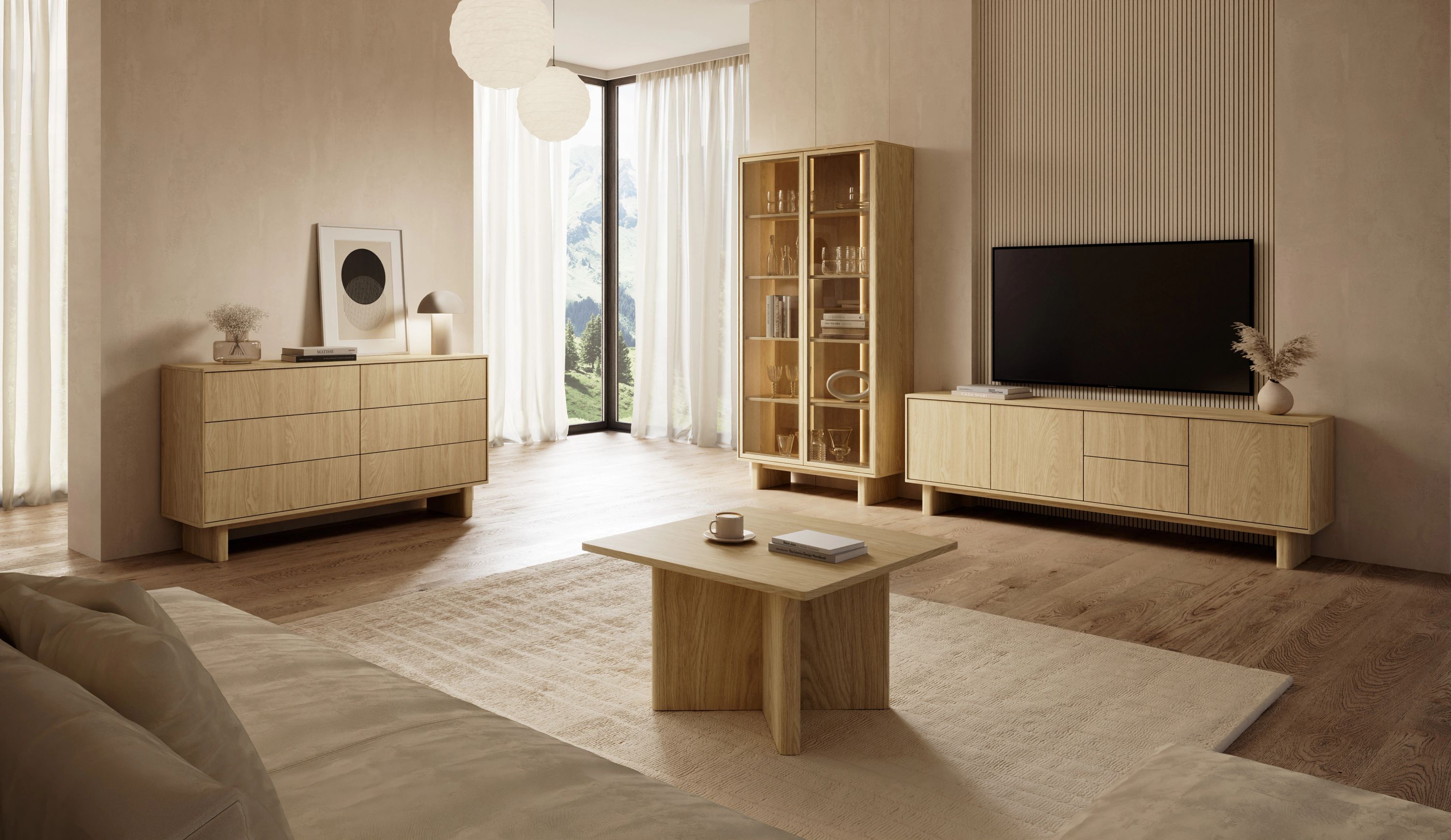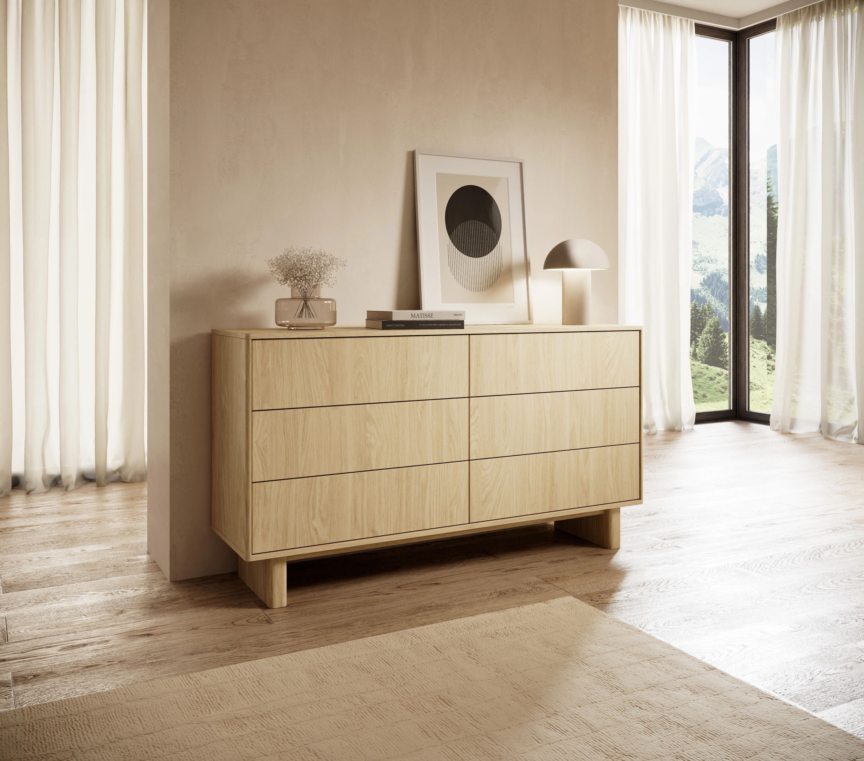 XXL Schubladenkommode / Sideboard NABU 153cm (6 Schubladen) – Eiche Geölt (Japandi)