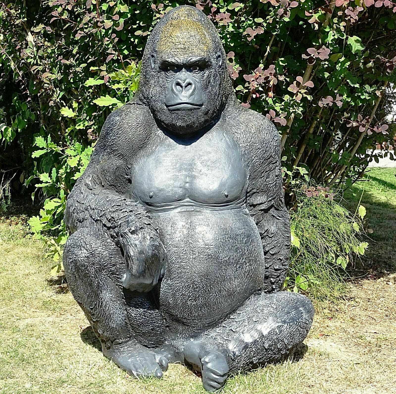 XXL Sitzender Gorilla Lebensgross AFFE Premium Gartendeko Garten-Deko-Figur