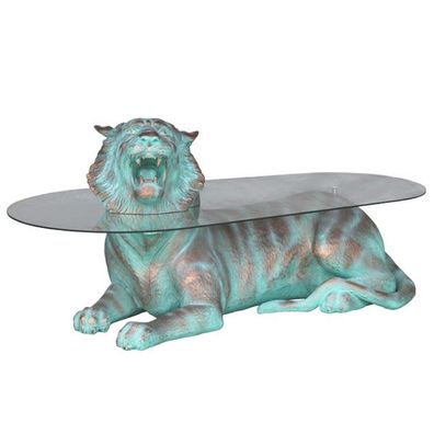 liegender Tiger in Bronzeoptik als Couchtisch lebensgroß 75cm fér draußen aus GFK