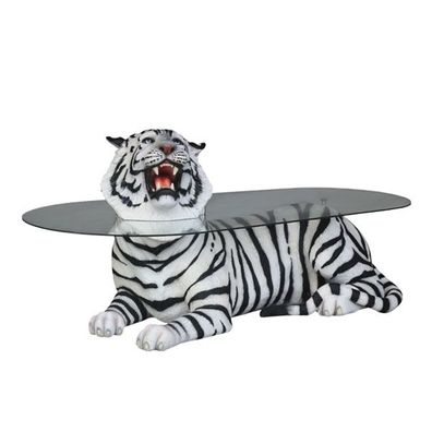 liegender Tiger schwarz weiß als Couchtisch lebensgroß 75cm fér draußen aus GFK
