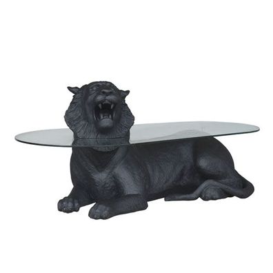 liegender Tiger schwarz als Couchtisch lebensgroß 75cm fér draußen aus GFK