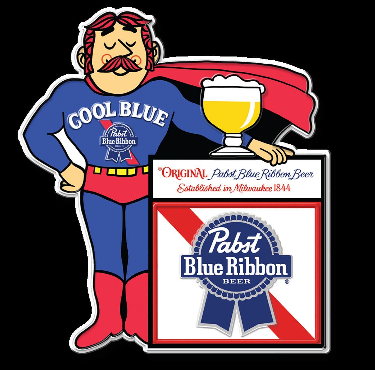 XXL Blechschilder aus den USA: Pabst Beer Blue Ribbon Glas - Größe ca. 58 x 26 cm Cool Blue Man - Größe ca. 58 x 54 cm motivgeprägt Made in USA lizenzierte Neuware