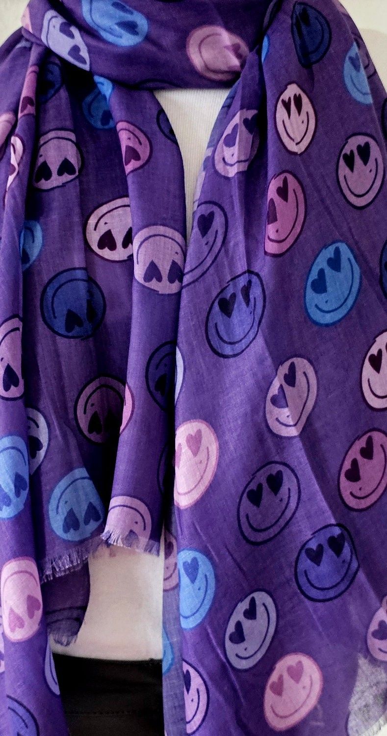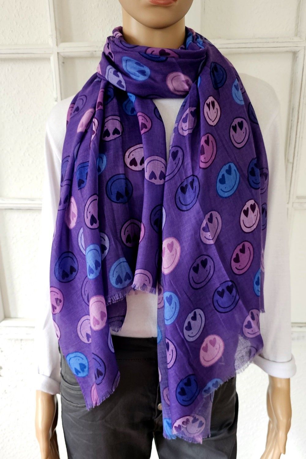 XXL weicher Schal Halstuch Stola 80 % Viskose 20 % Baumwolle Smileyprint Lila