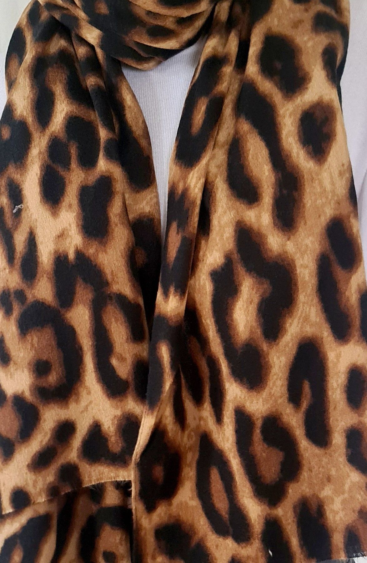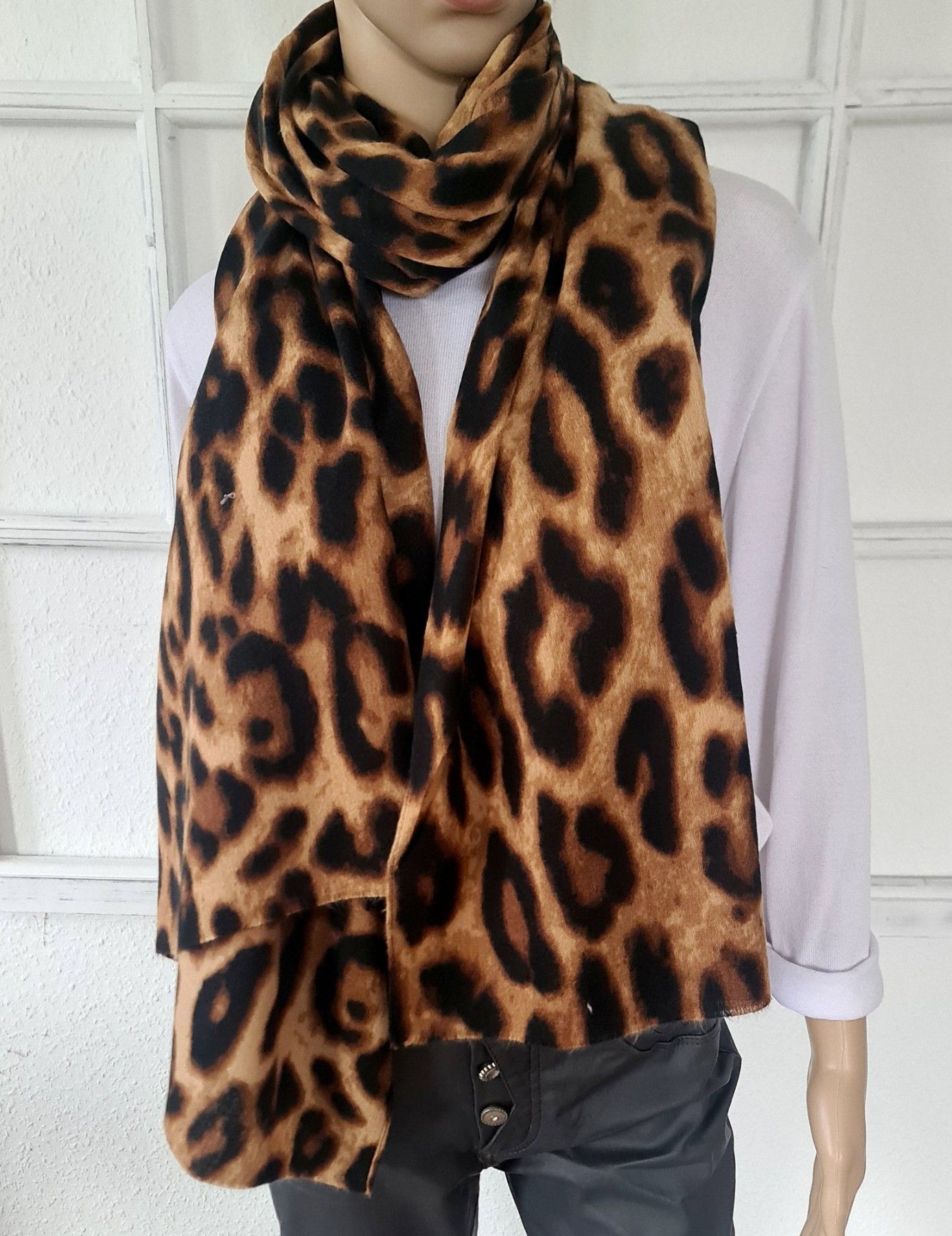 XXL weicher Schal Halstuch Viskose Wolle Leoprint 180 cm x 100 cm Braun/ Schwarz