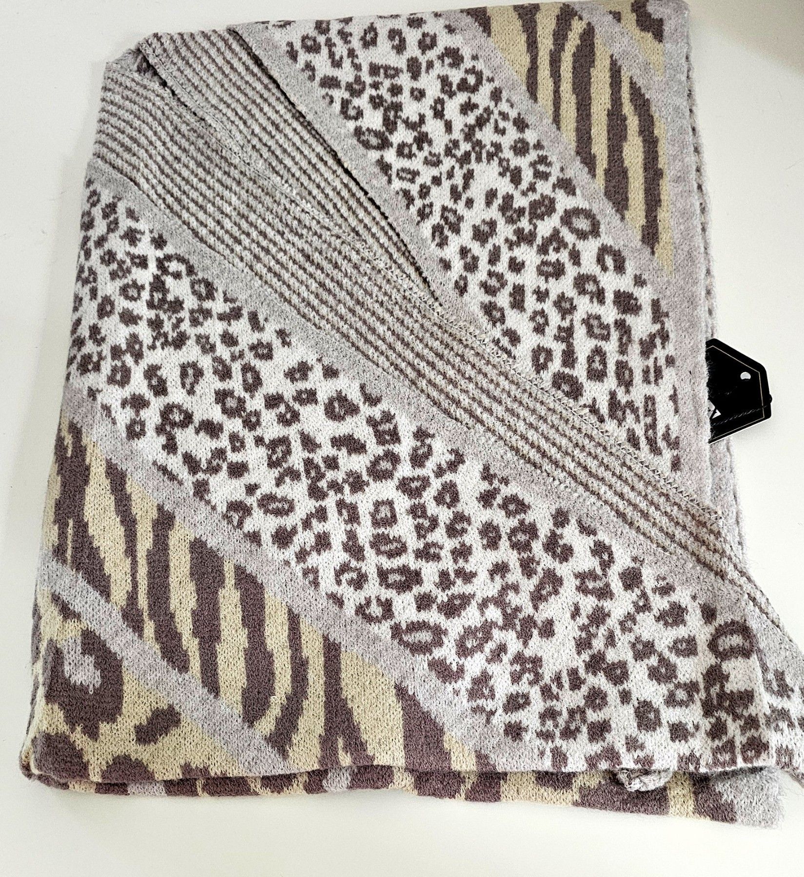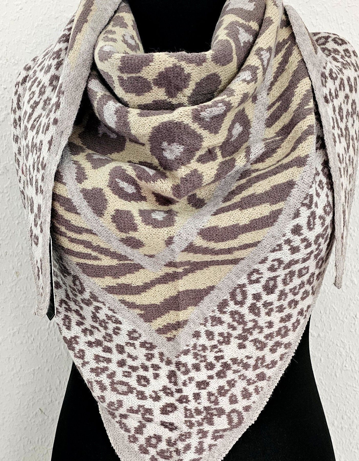 XXL Winter Dreieckstuch Dreieckschal Viskosemischung Animalprint Beige/Grau/Taupe
