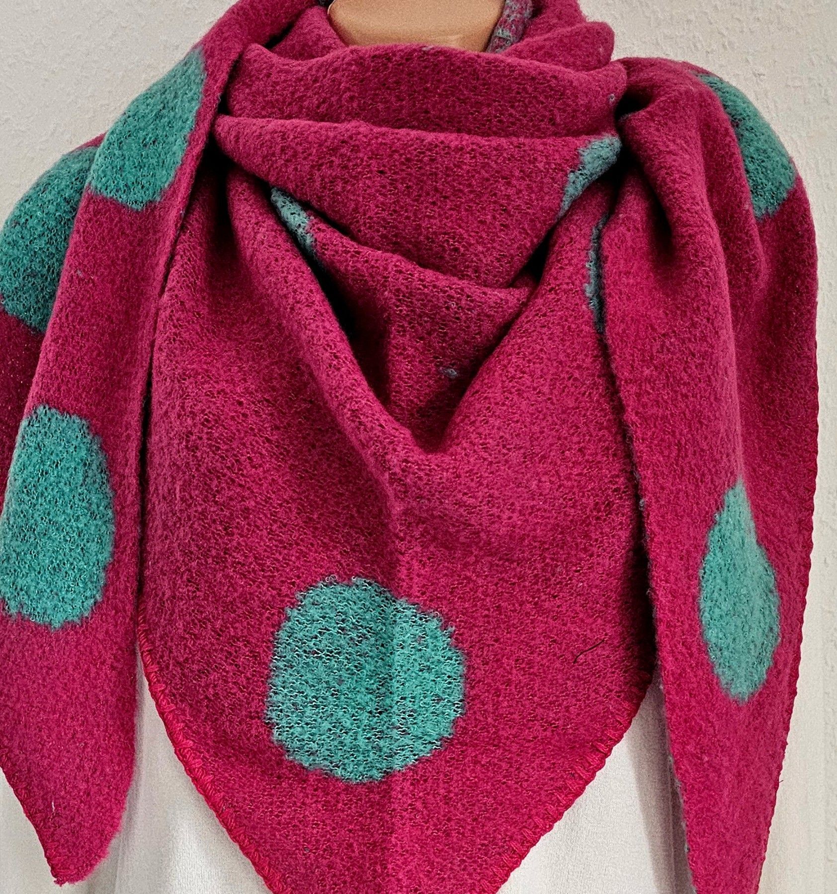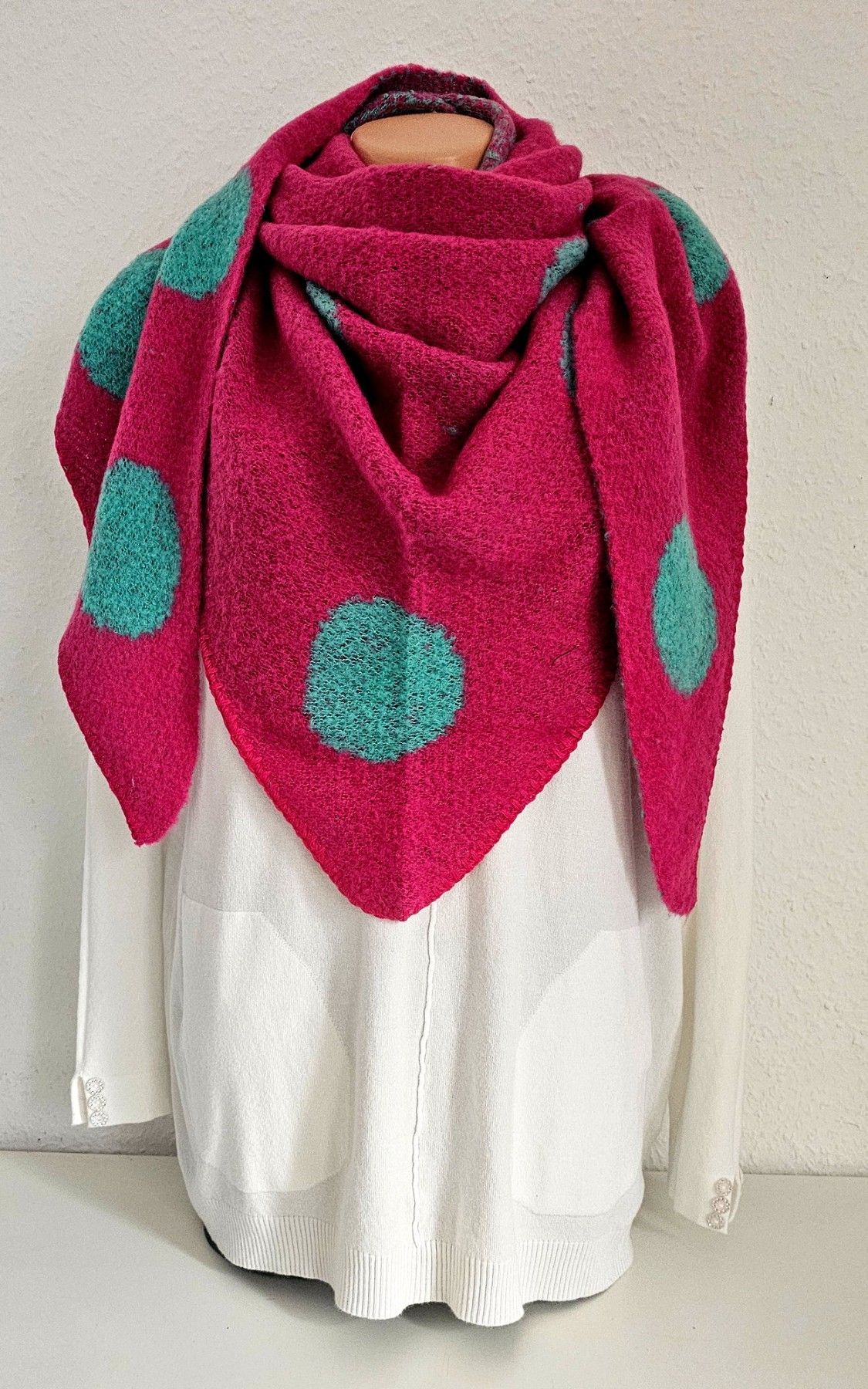XXL Winter Flausch Dreieckstuch Halstuch Schal Viskose Wolle große Punkte Pink/Türkis