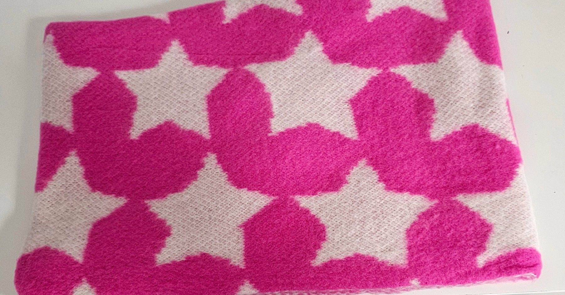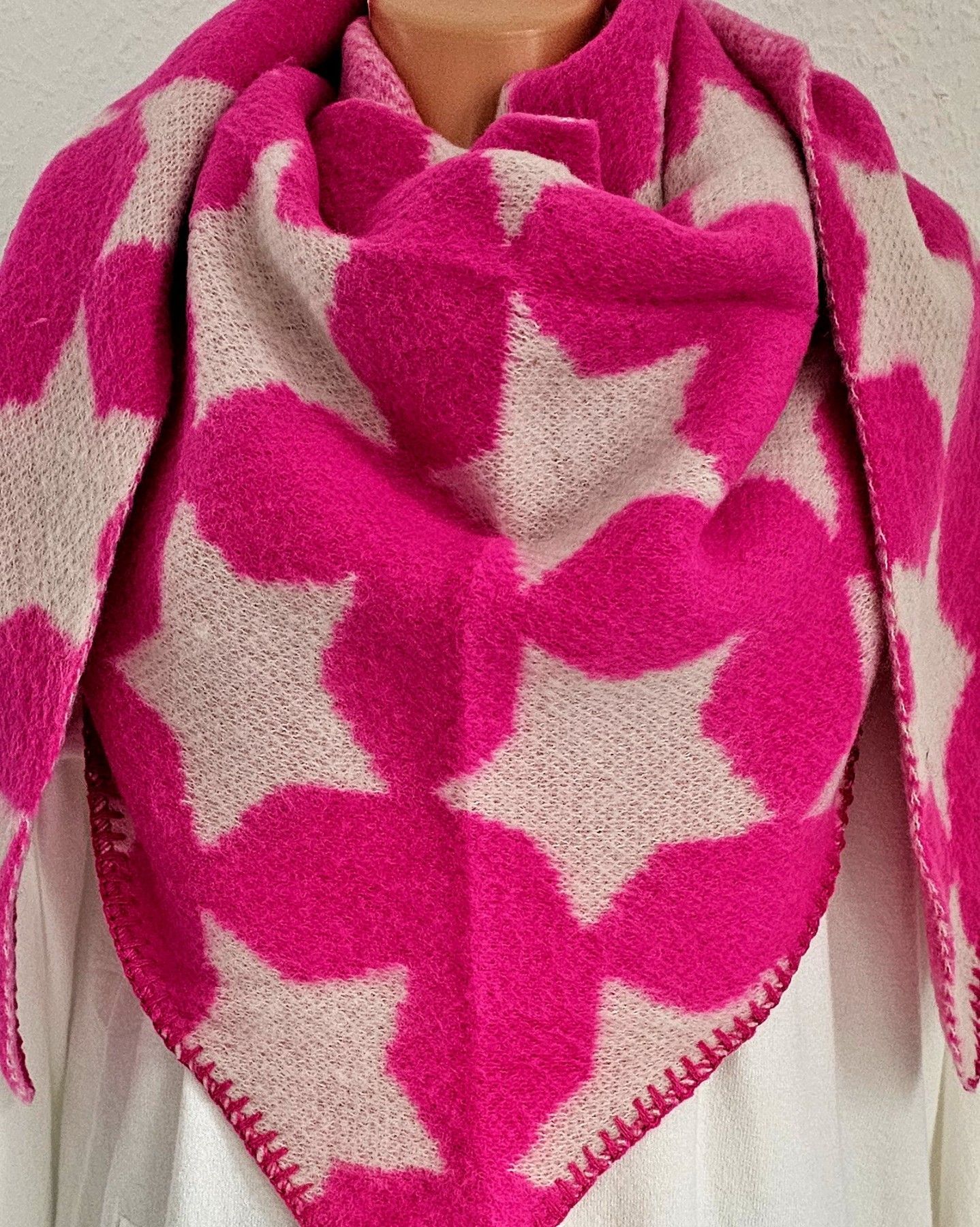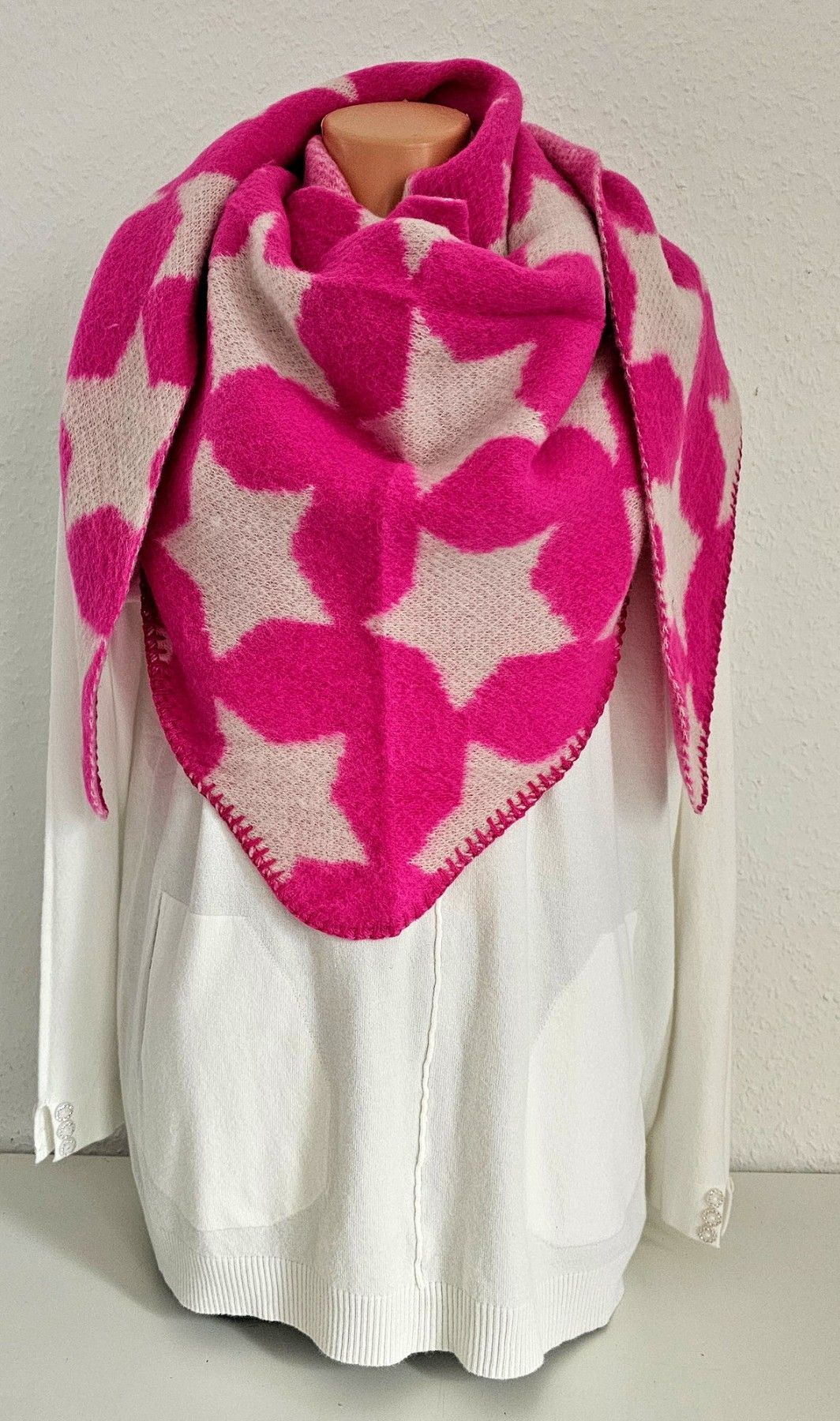 XXL Winter Flausch Dreieckstuch Halstuch Schal Viskose Wolle große Sterne Pink/Weiß