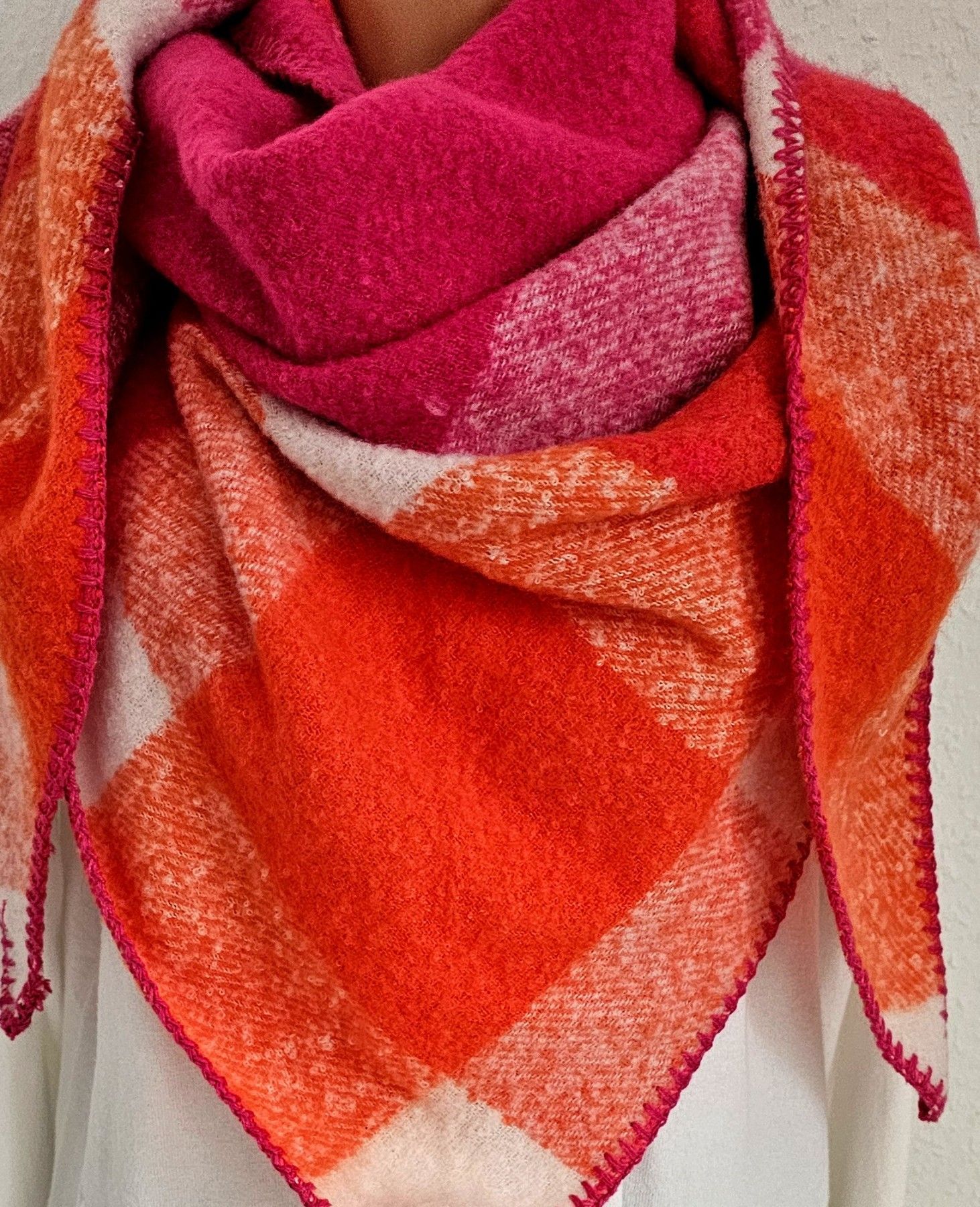 XXL Winter Flausch Dreieckstuch Halstuch Schal Viskose Wolle Karo Pink/Orange