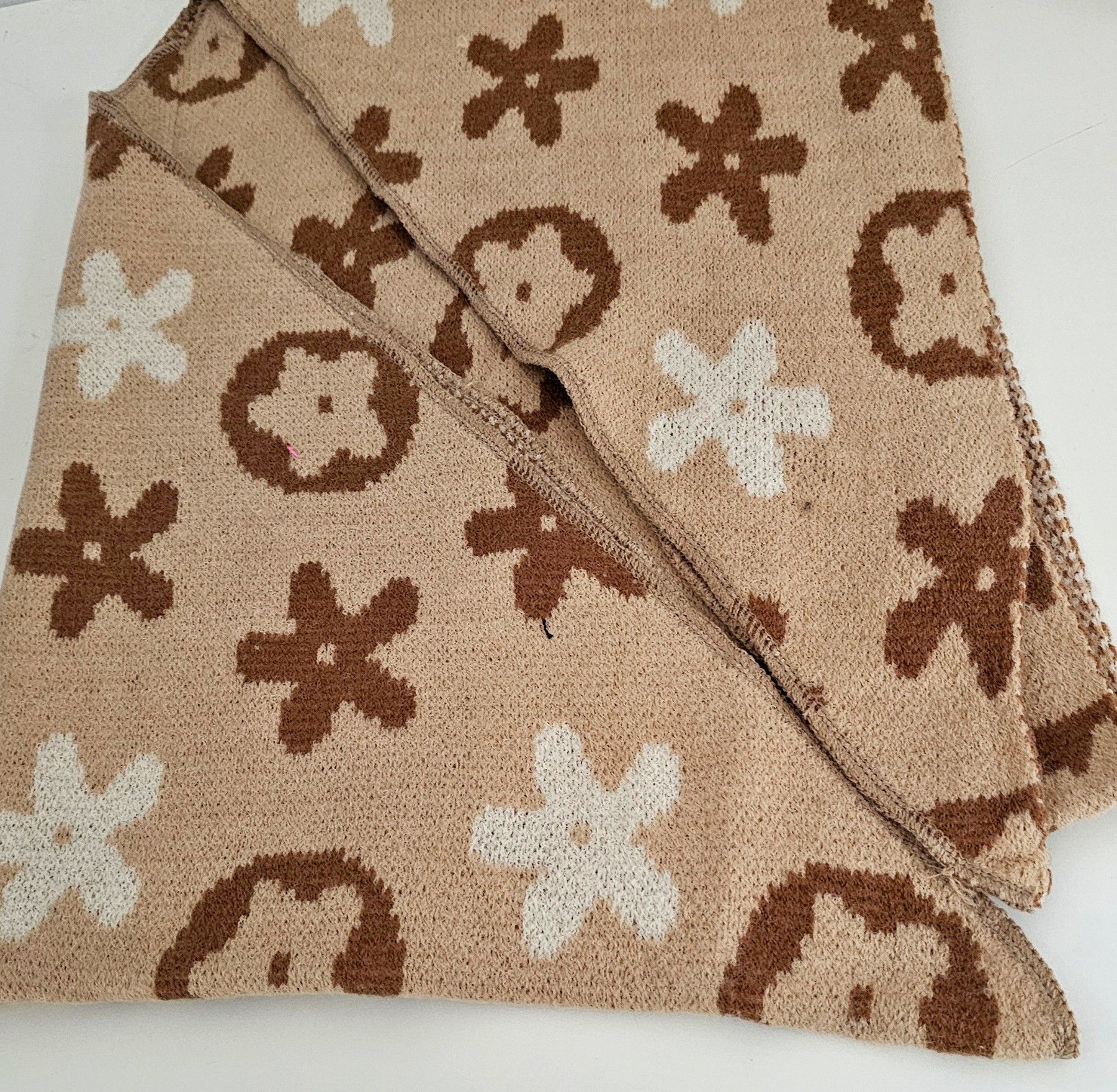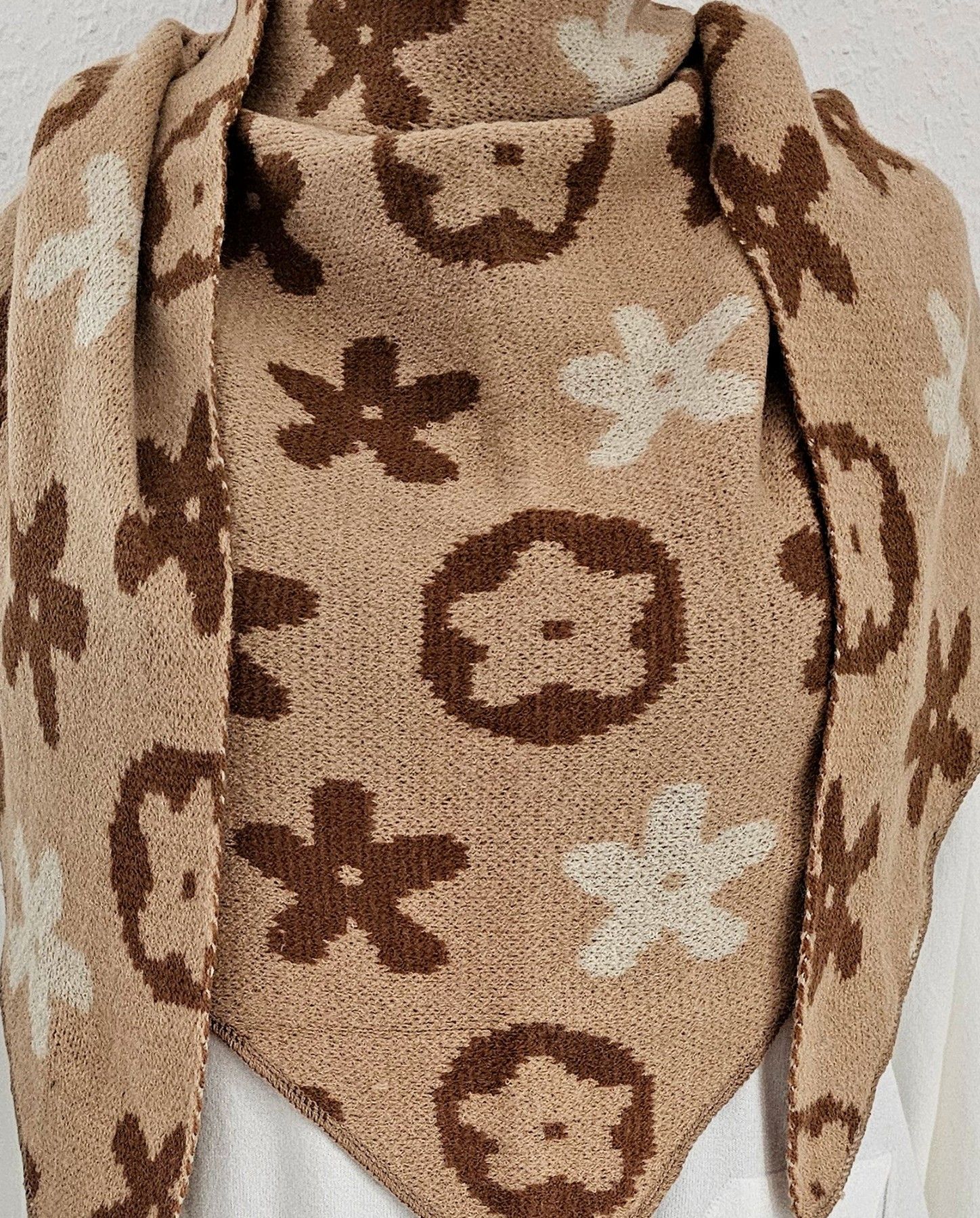XXL Winter Flausch Dreieckstuch Schal Viskose Wolle bunte Blüten Beige/Braun/Weiß