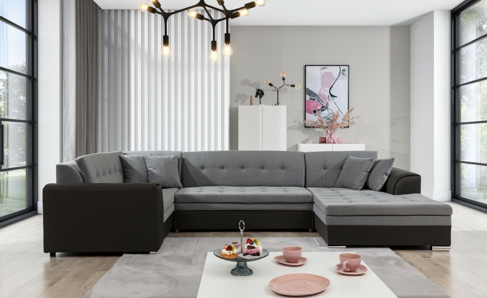 XXL Wohnlandschaft 340CM Bettfunktion Schlafsofa U-FORM Ecksofa Ottomane Lagernd