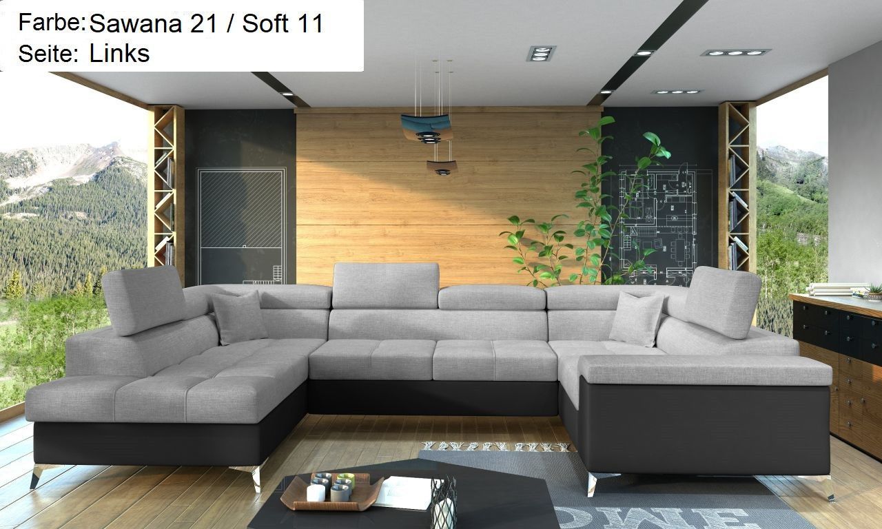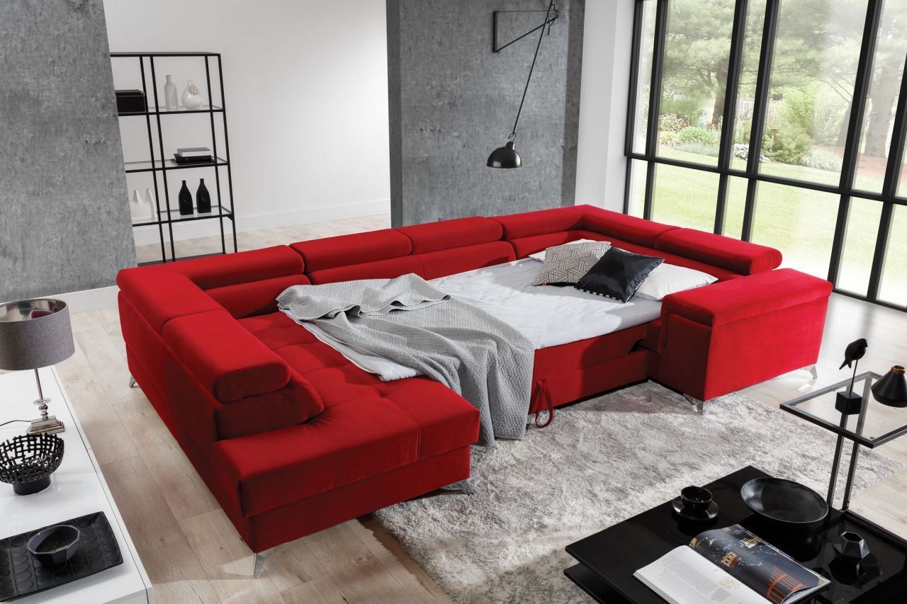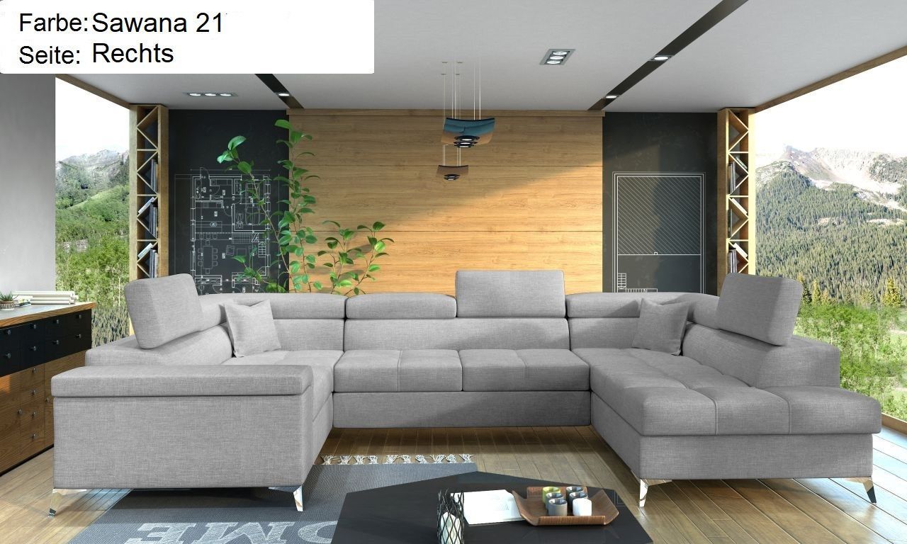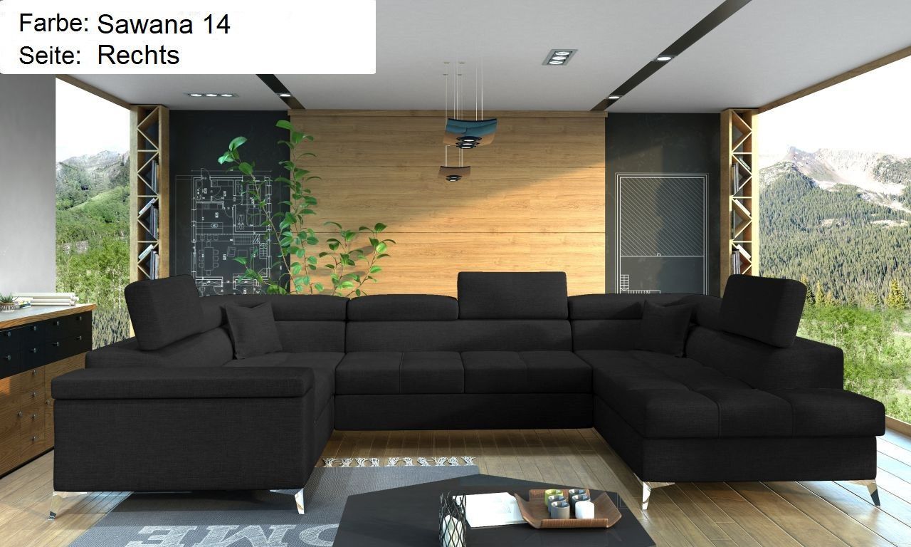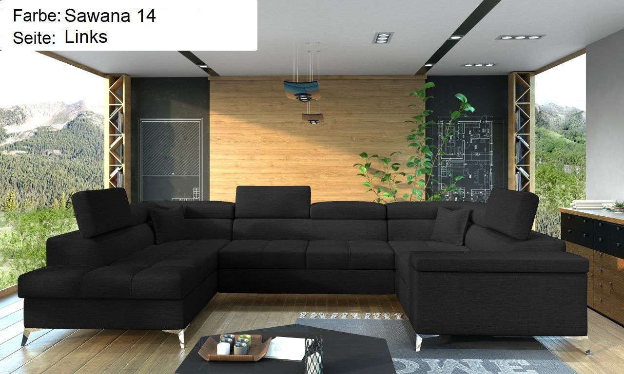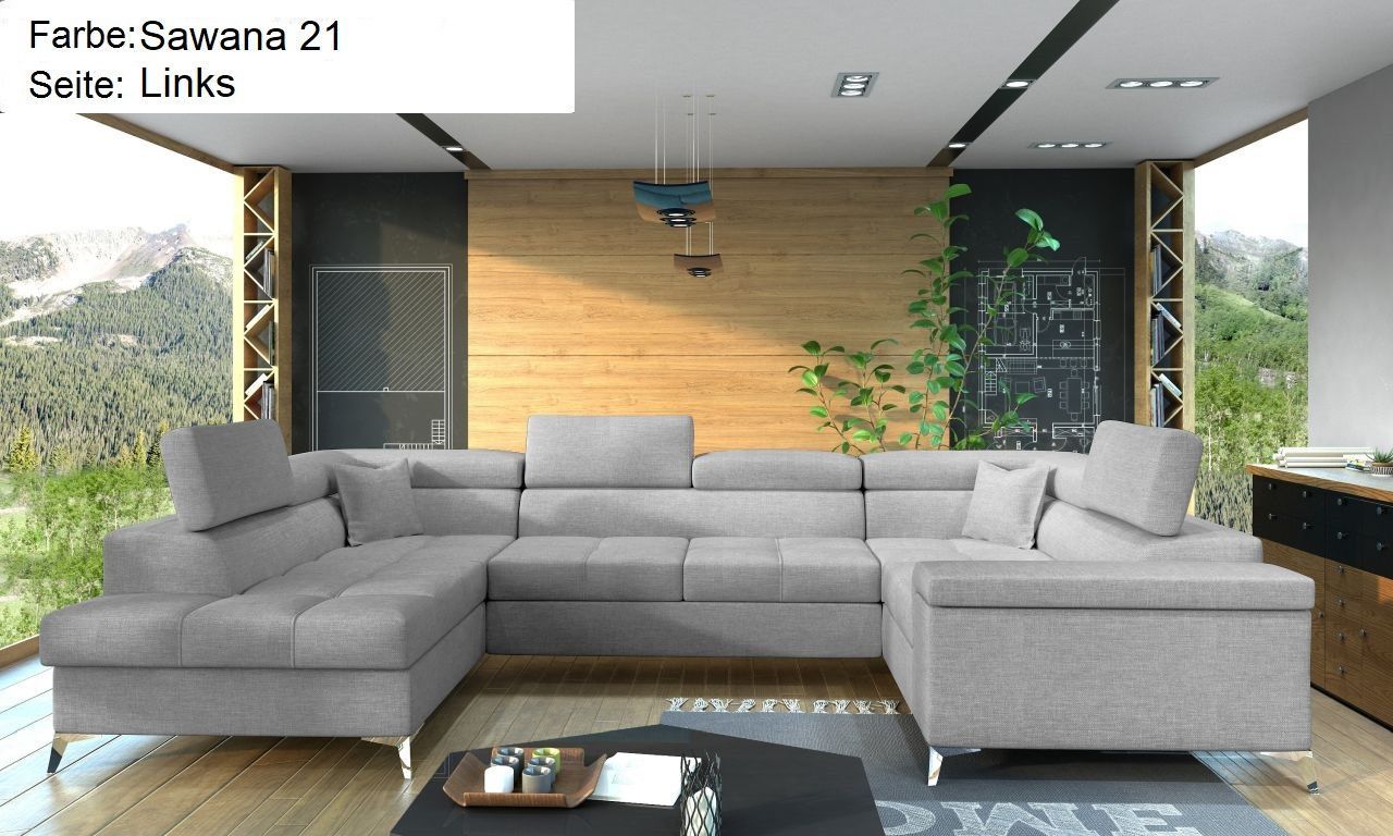XXL Wohnlandschaft Tango mit Schlaffunktion und Bettkasten Ecksofa in U-Form