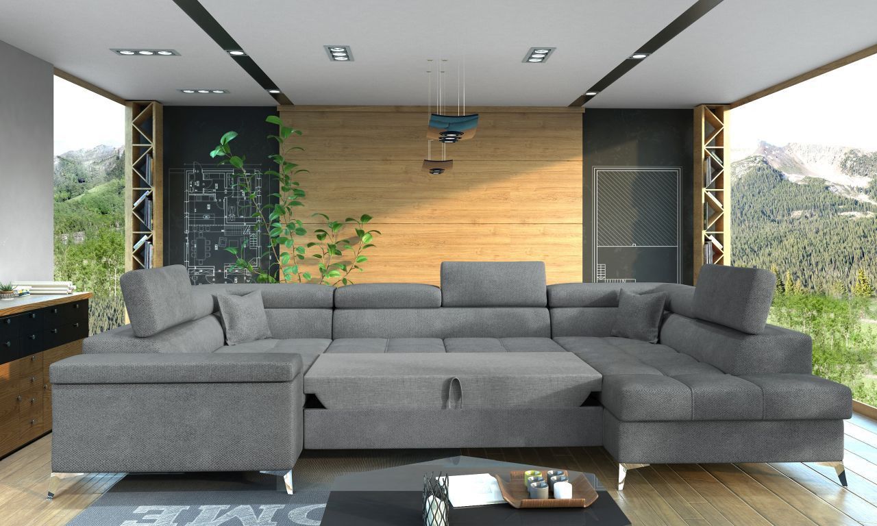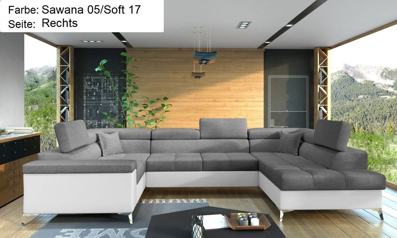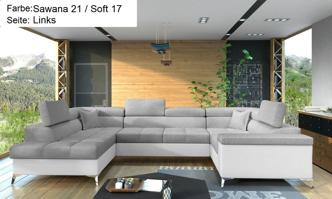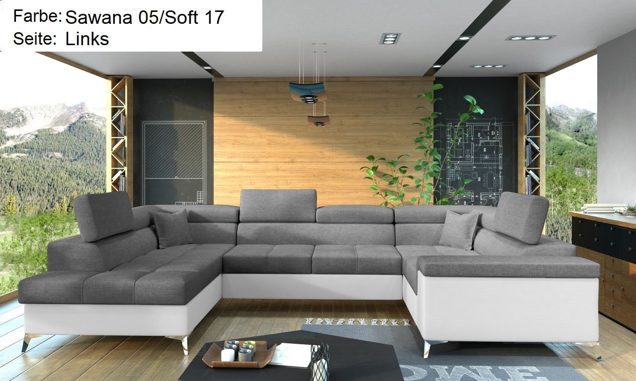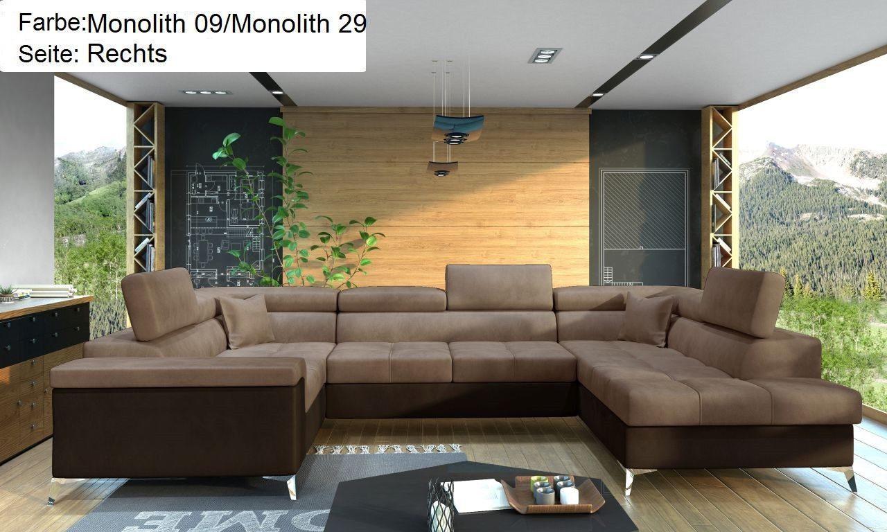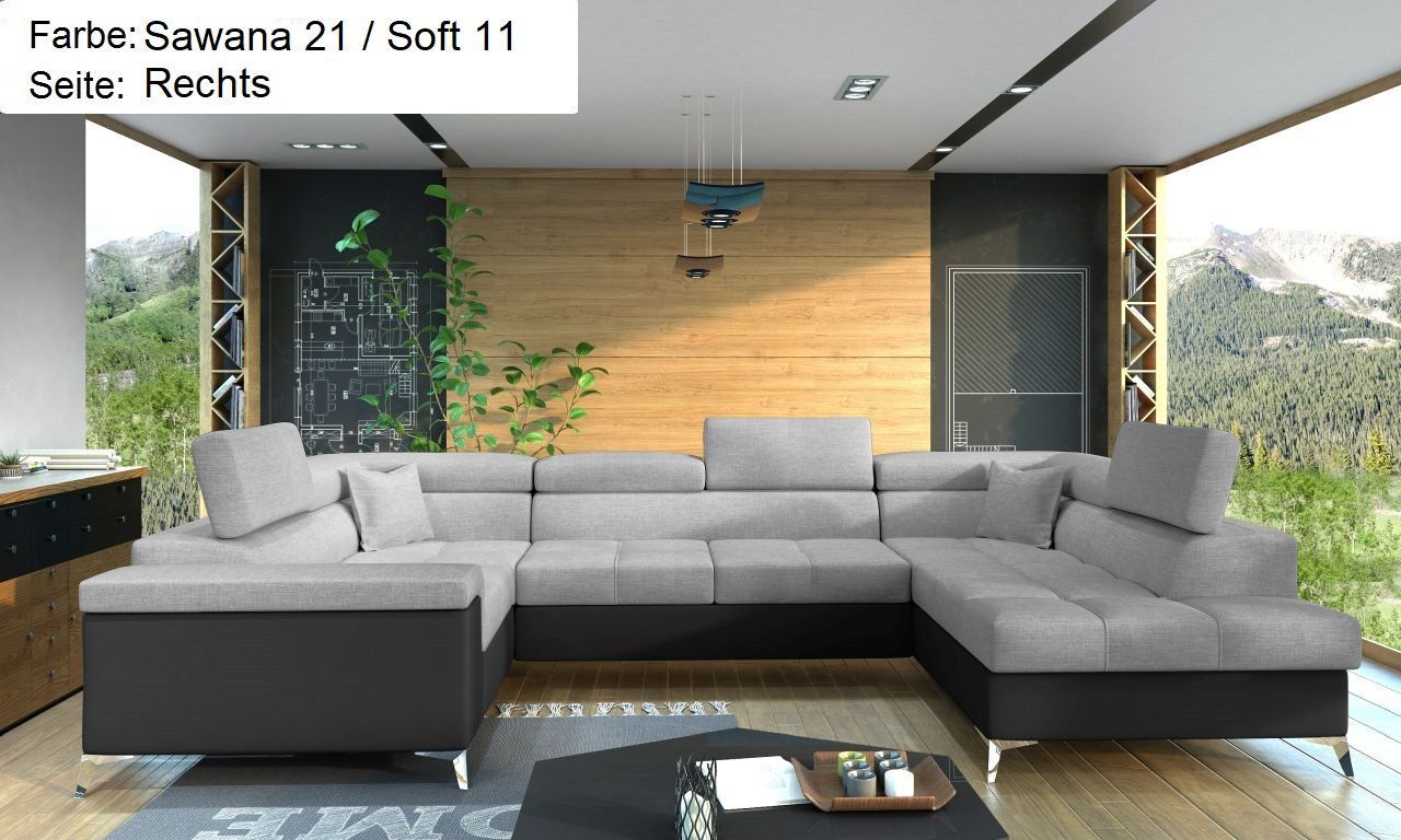 XXL Wohnlandschaft Tango mit Schlaffunktion und Bettkasten Ecksofa in U-Form