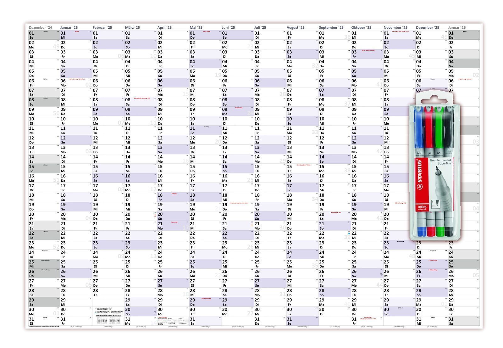 XXXL Wandkalender Special A0 2025 nass abwischbar 120x80cm inkl. Stifteset