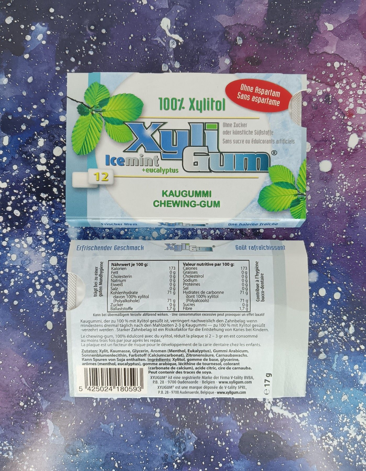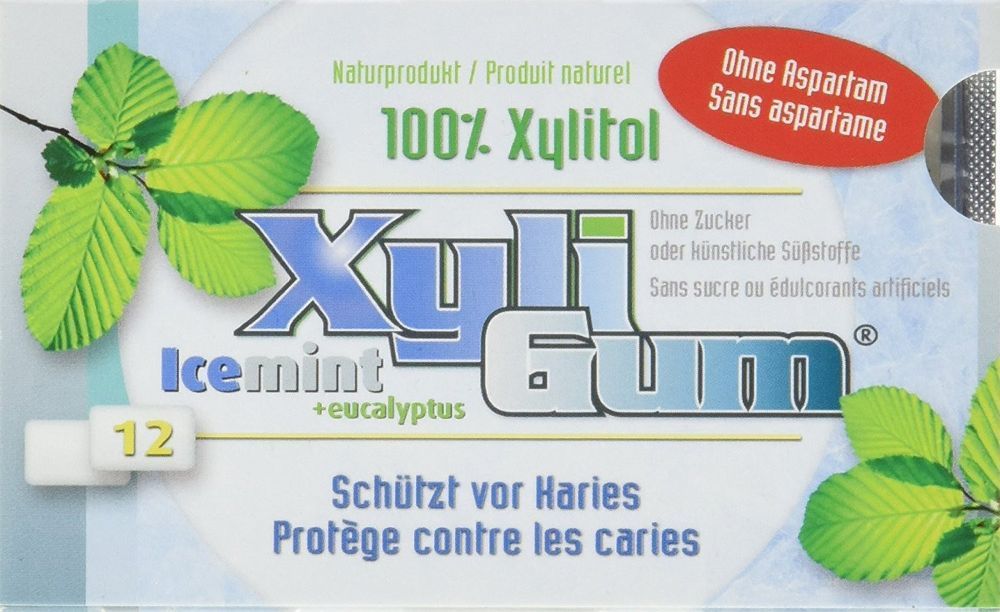 XyliGum Kaugummi Icemint + Eucalyptus, 8 x Packung (a 12 Stück 17g) , von V-tality