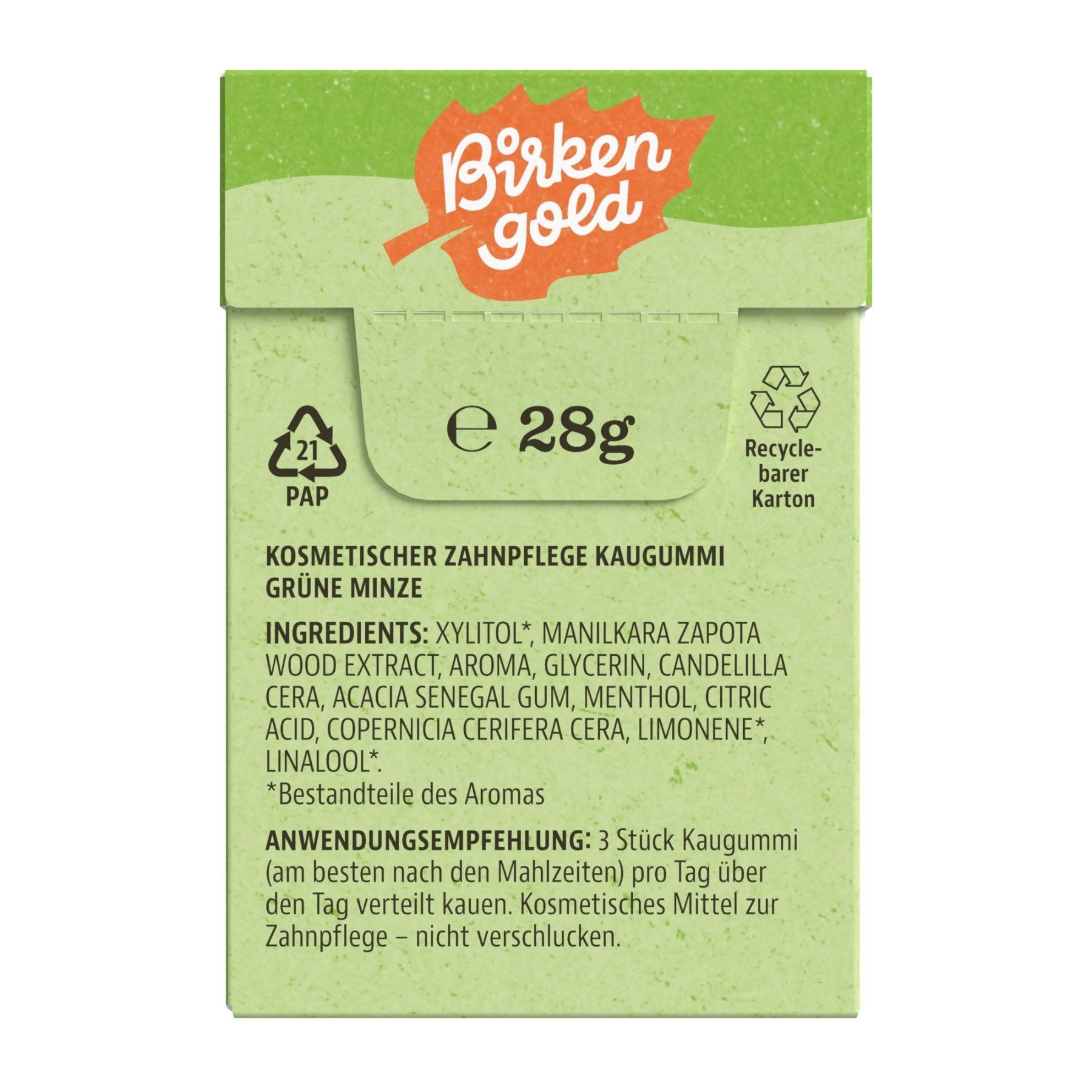 Xylit Grüne Minze Kaugummi 28 gr. im Flip Top von Birkengold