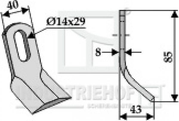 Y-Messer Mulchmesser 63-FEI-13 passend für Howard Agrimaster Ferri Mulcher Technische Datem: Y-Messer mit Langloch Best.-Nr. 63-FEI-13 Gewicht 0,244 kg Dicke 8 mm Länge 85 mm Breite 40 Tiefe 43 mm Bohrung 14 X 29 mm Artikel passend für Fabrikat: Howard Agrimaster Ferri Zanon Zampini Obenstehende Ori