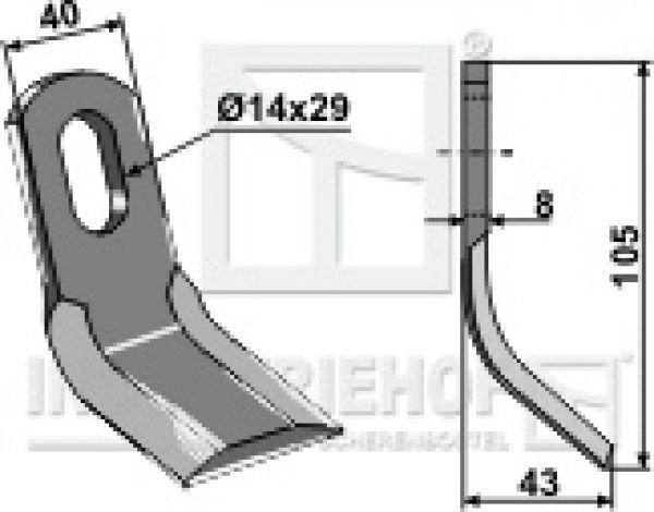 Y-Messer Mulchmesser 63-FEI-15 passend für Howard Ferri Orsi Mulcher Technische Datem: Y-Messer mit Langloch: Best.-Nr. 63-FEI-15 Gewicht 0.247 kg Dicke 8 mm Länge 105 mm Breite 40 Tiefe 43 mm Bohrung 14 X 29 mm Artikel passend für Fabrikat: Ferri: 0901068 Howard: 222011424 Orsi: CL00323 Cosma M.E.A