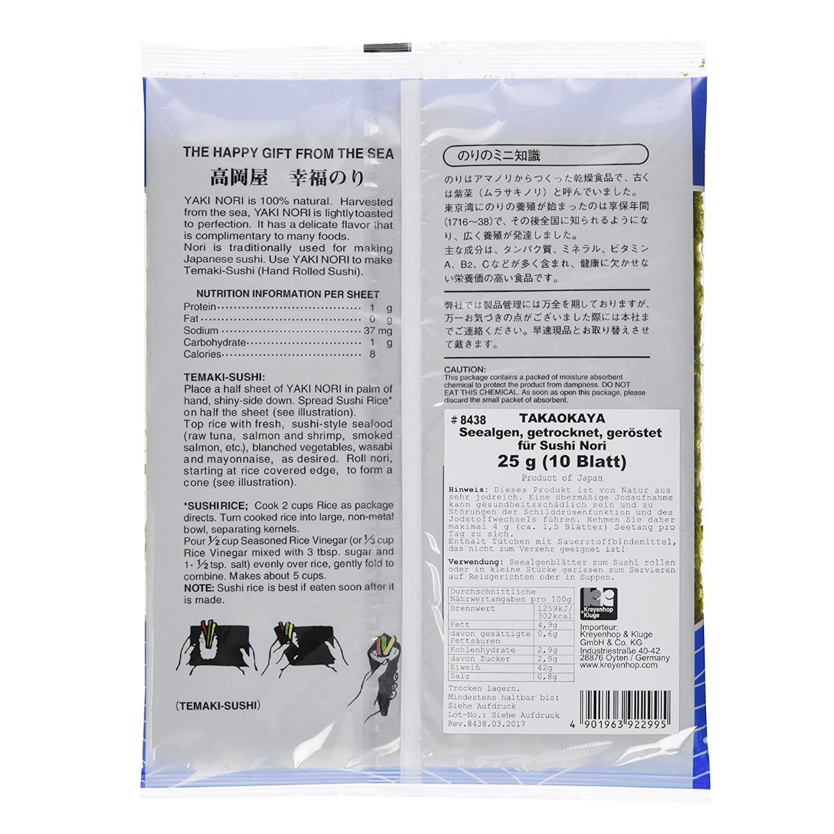 Yaki Nori Seealgenblätter geröstet getrocknet für Sushi Takaokaya 25g