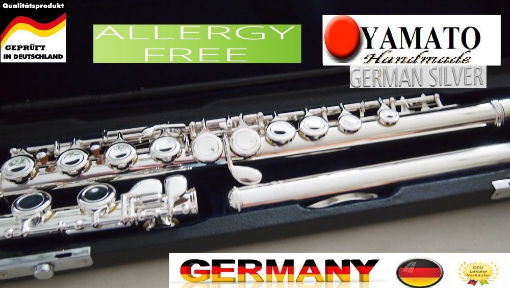 * * * * * * * * Beratung&Service 0179 8193236 Querflöte YAMATO FL 211 geschlossene Klappen E-Mechanik Silberkopf German-Silver Sterling-Silver plated vorgezogenes G C-Fuß E-Mechanik geschlossene Klappen von Hand geschmiedete Klappen Markenpolster für extrem lange Haltbarkeit Kopf, Korpus und Fuß