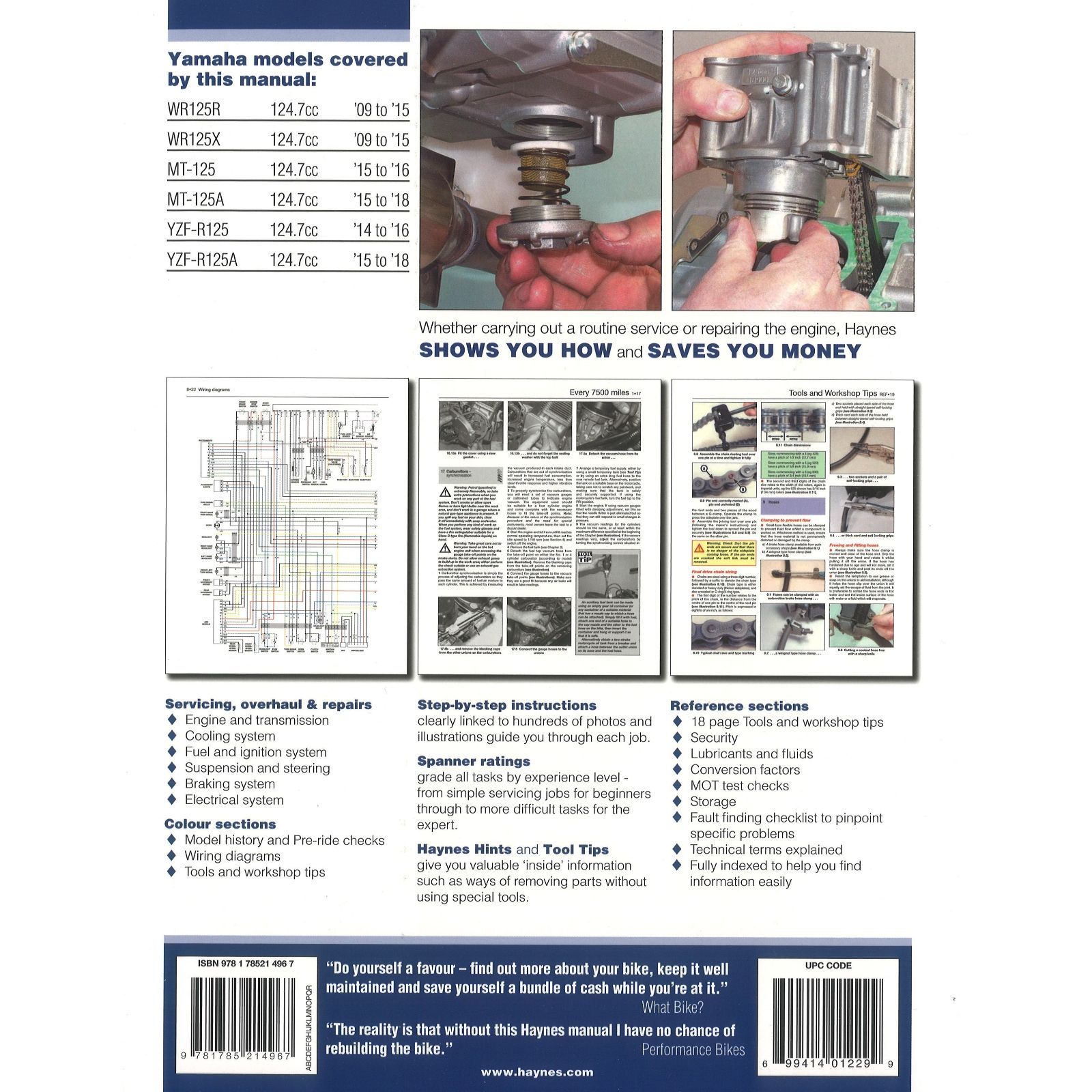 Yamaha Motorrad MT-125, YZF-R125, WR125R und X (2009-2018) Reparaturanleitung