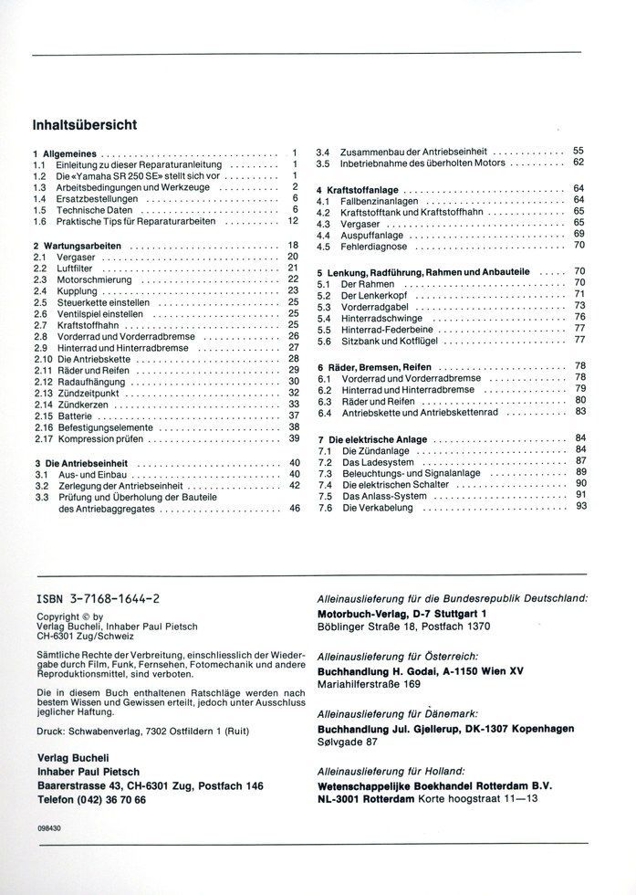 Yamaha SR 250 SE Baujahre ab 1980 Reparaturanleitung Reparaturhandbuch Bucheli