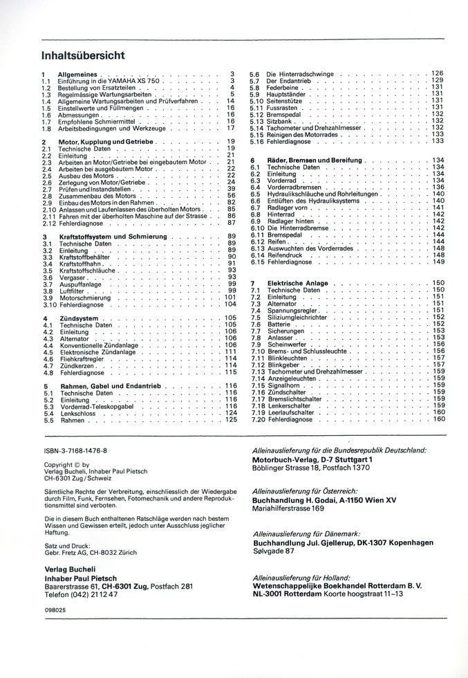 Yamaha XS 750, 750E, 750SE 3 Zylinder Baujahr ab 1978 Bucheli Reparaturanleitung