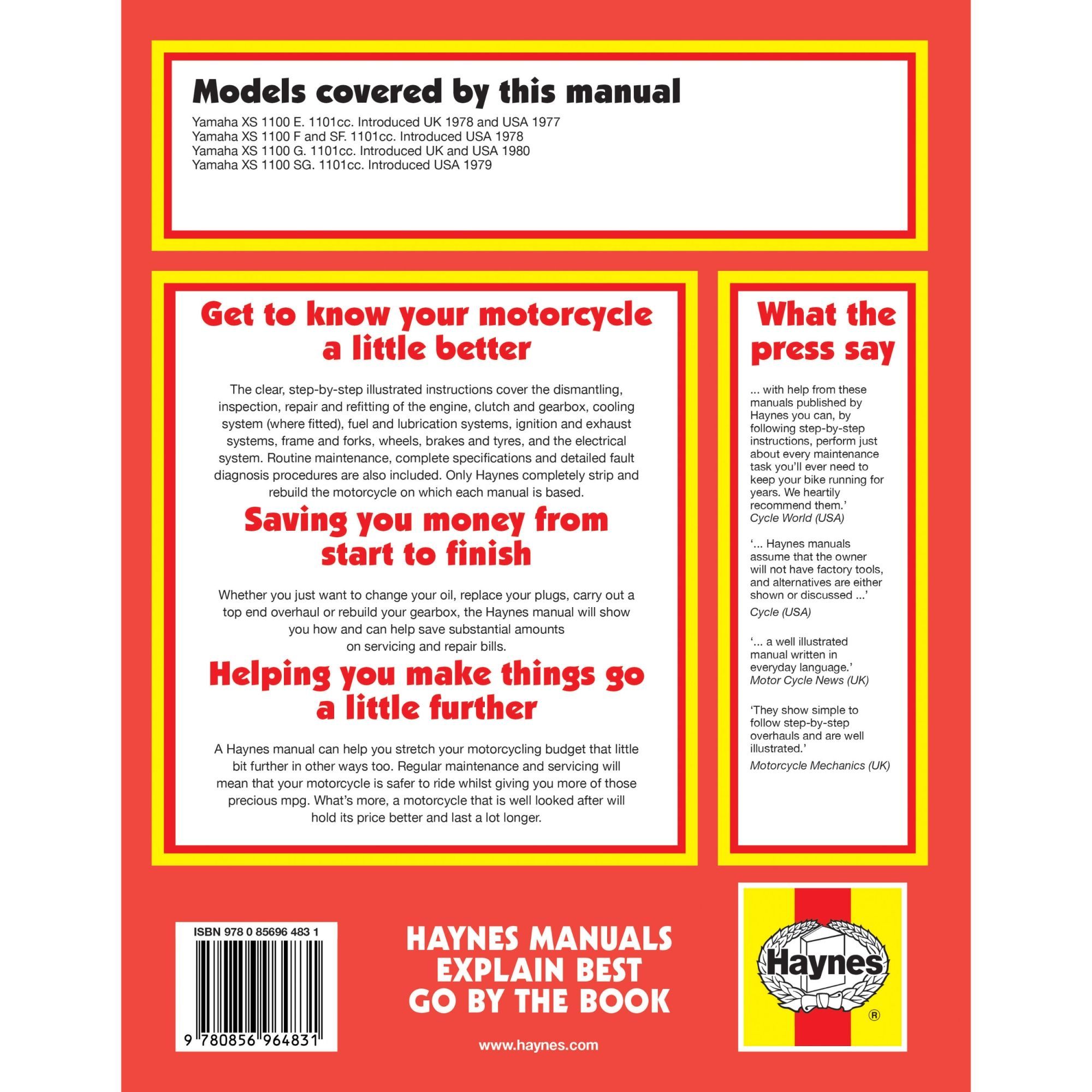 Yamaha XS1100 E/F/G/SG/SF 1977-1980 UK US Motorrad Reparaturanleitung Haynes