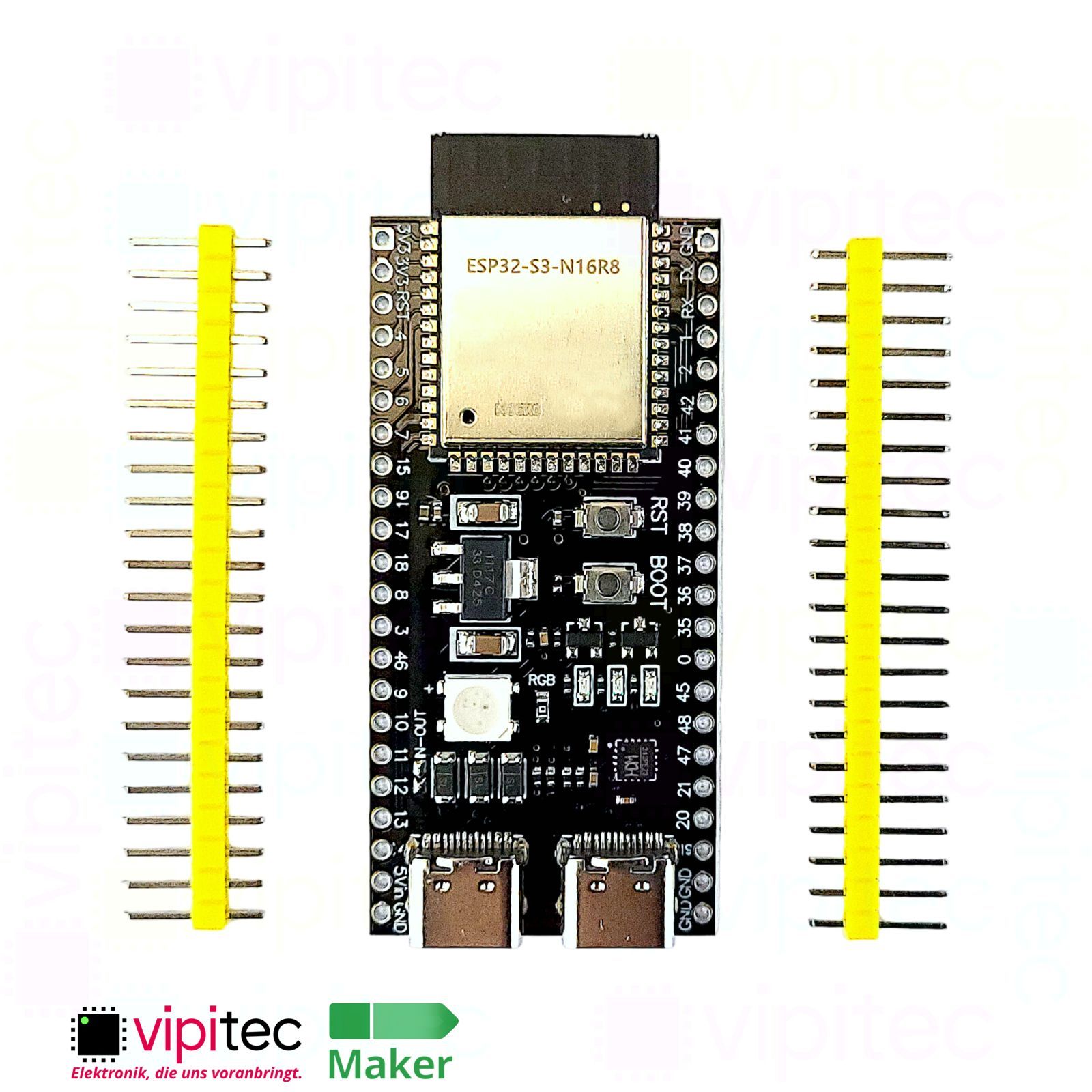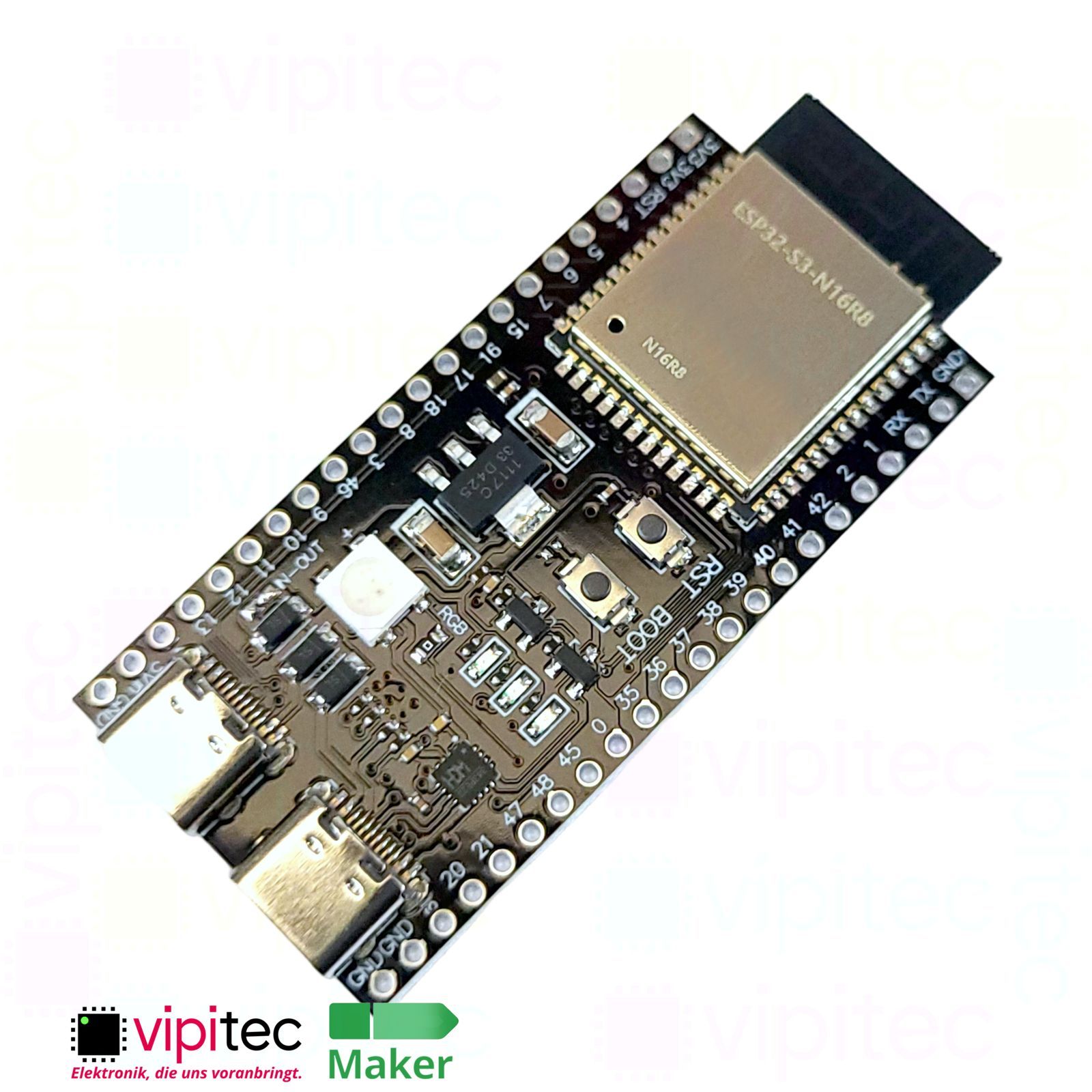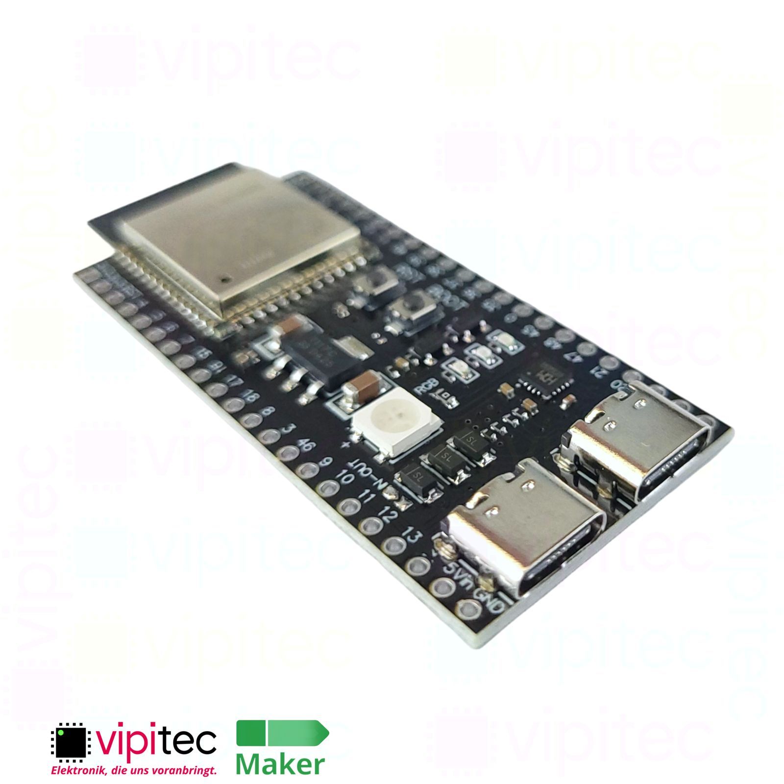 Warenkorb vipitec Shop Aktuelle Angebote Kontakt Komponenten > Entwicklungsplatinen YD-ESP32-S3 Dual USB-C Ent& 173;wicklungs& 173;board Spezifikation: 240 MHz Xtensa& 174; Dual-Core LX7, 16 MB Flash, 2x USB-C, CH343, Wi-Fi, Bluetooth In unserem Shop finden Sie weitere Entwicklungsplatinen . Proz