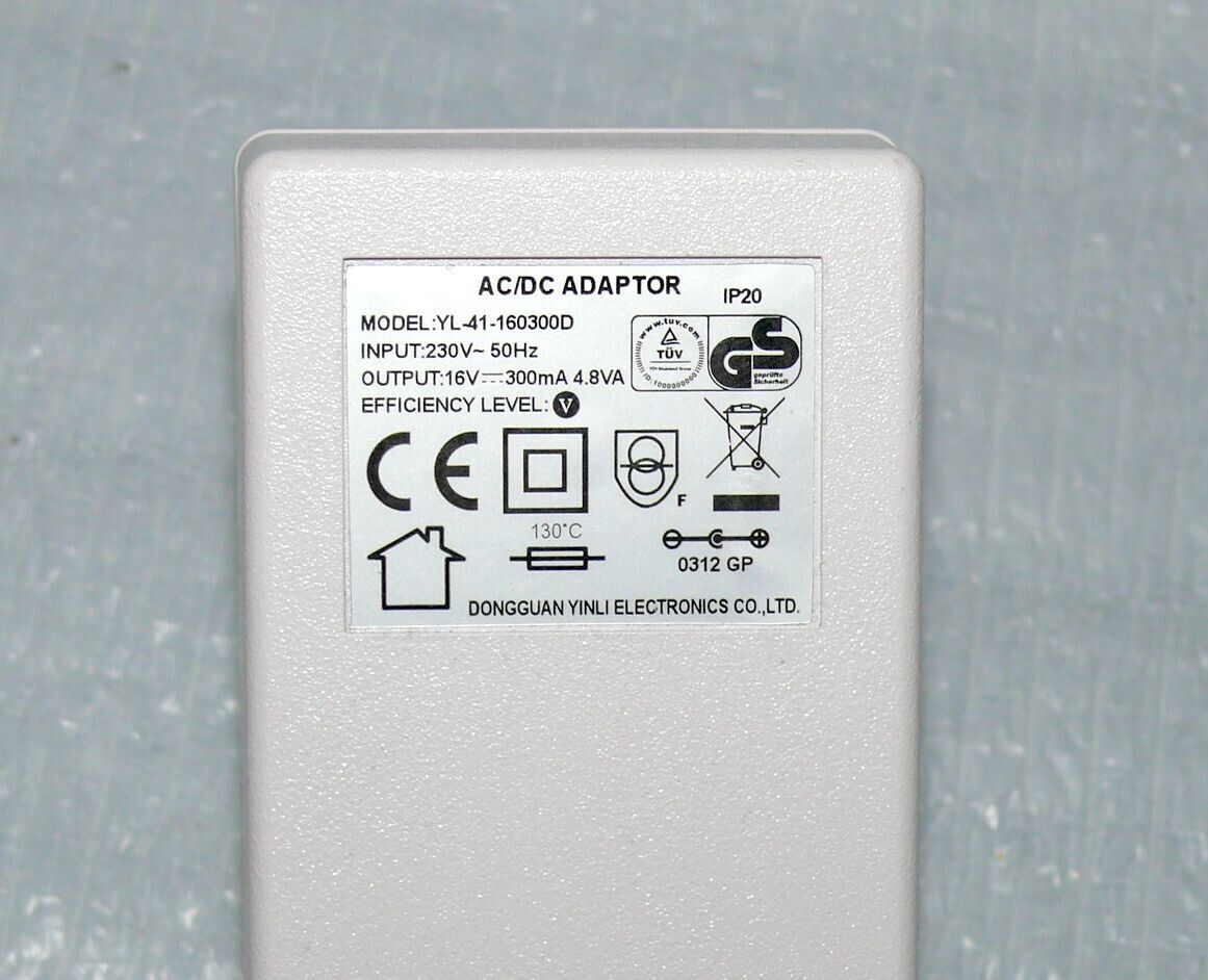 YL 41160300D Netzteil Netzadapter 16V 300mA 4,8VA Sauger Stromstecker 5,3-3,1mm