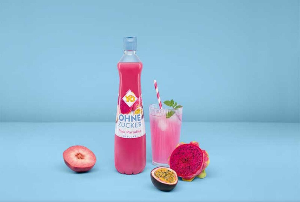 Yo Sirup Pink Paradise ohne Zucker Apfel Passionsfrucht Drachenfrucht 700 ml