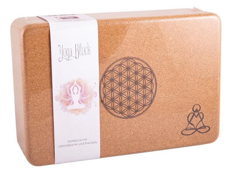 Yogablock aus Kork BLUME DES LEBENS / Mandala H: 7 cm Yogasitz Korkblock