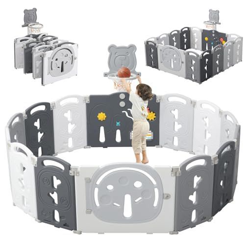 YOLEO Klappbares Laufgitter 113 x 113 cm, Laufgitter mit Tür und Spielbrett