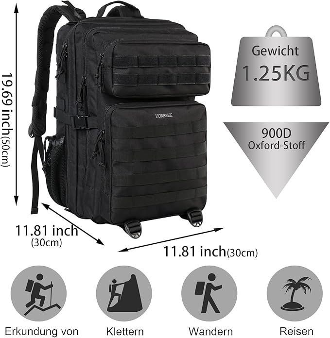 Yorepek 45L Wasserdichter Militär Rucksack Herren, Taktischer Molle Outdoor Backpack